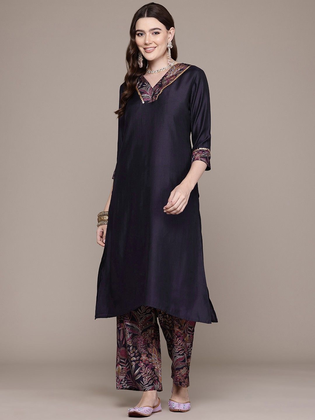 in Purple and Violet with Printed work