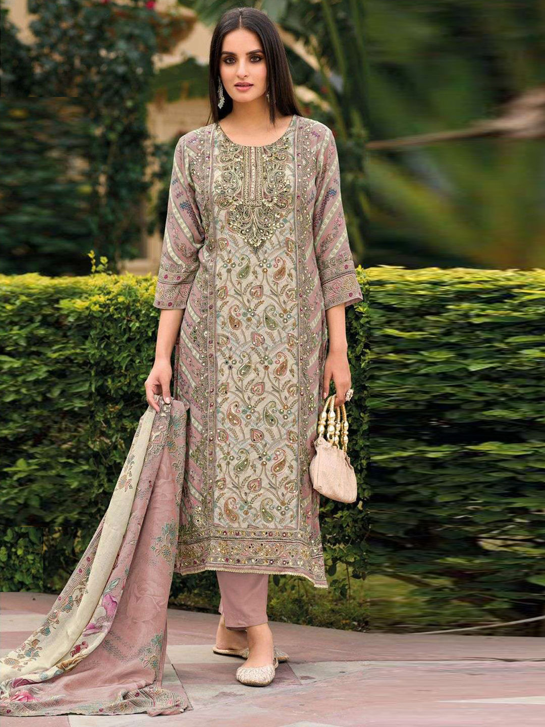 Pink and Majenta color Salwar Kameez in Muslin fabric with Aari, Digital Print, Mirror work