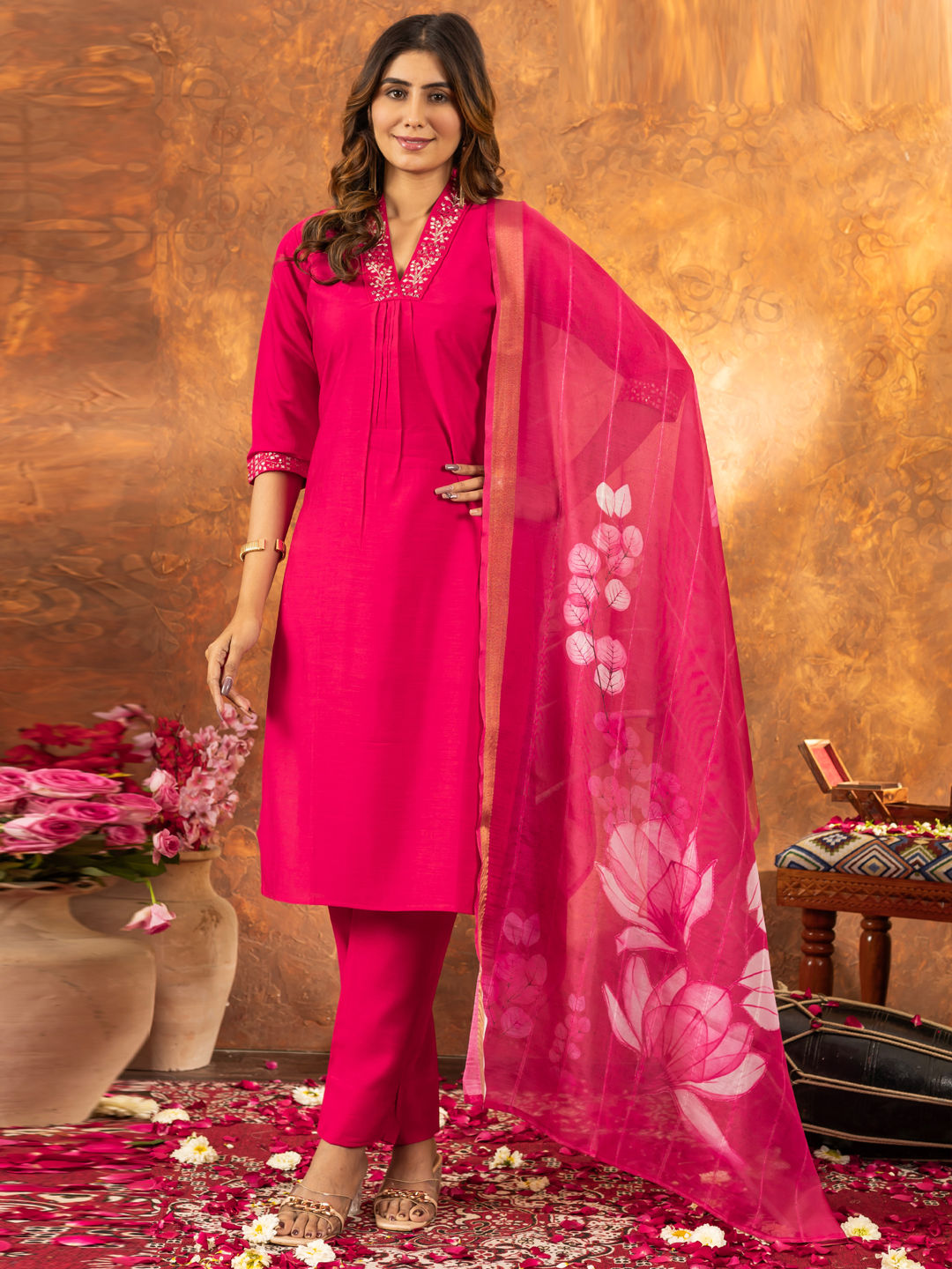 Pink and Majenta color Salwar Kameez in Muslin fabric with Embroidered, Sequence, Thread work