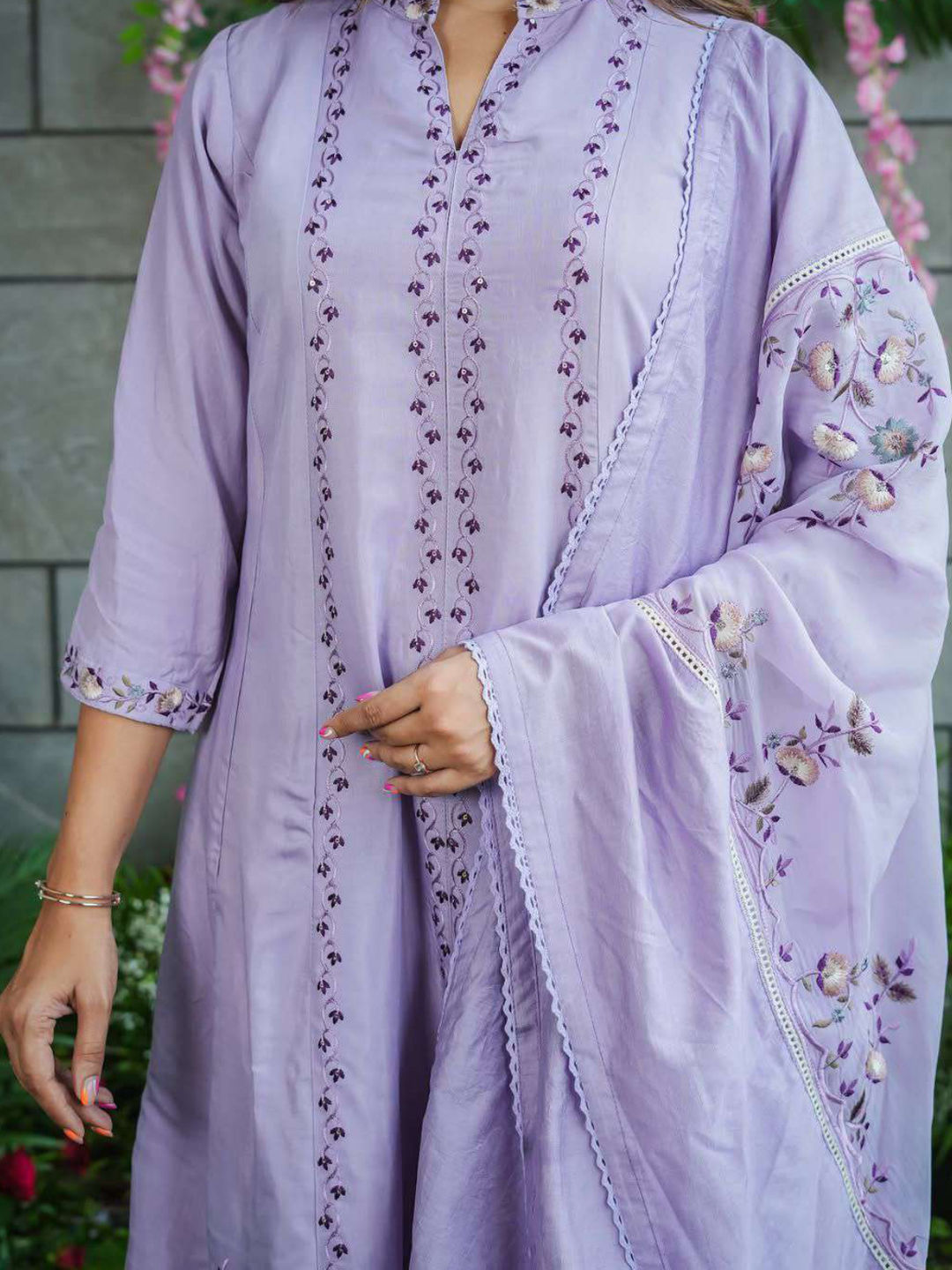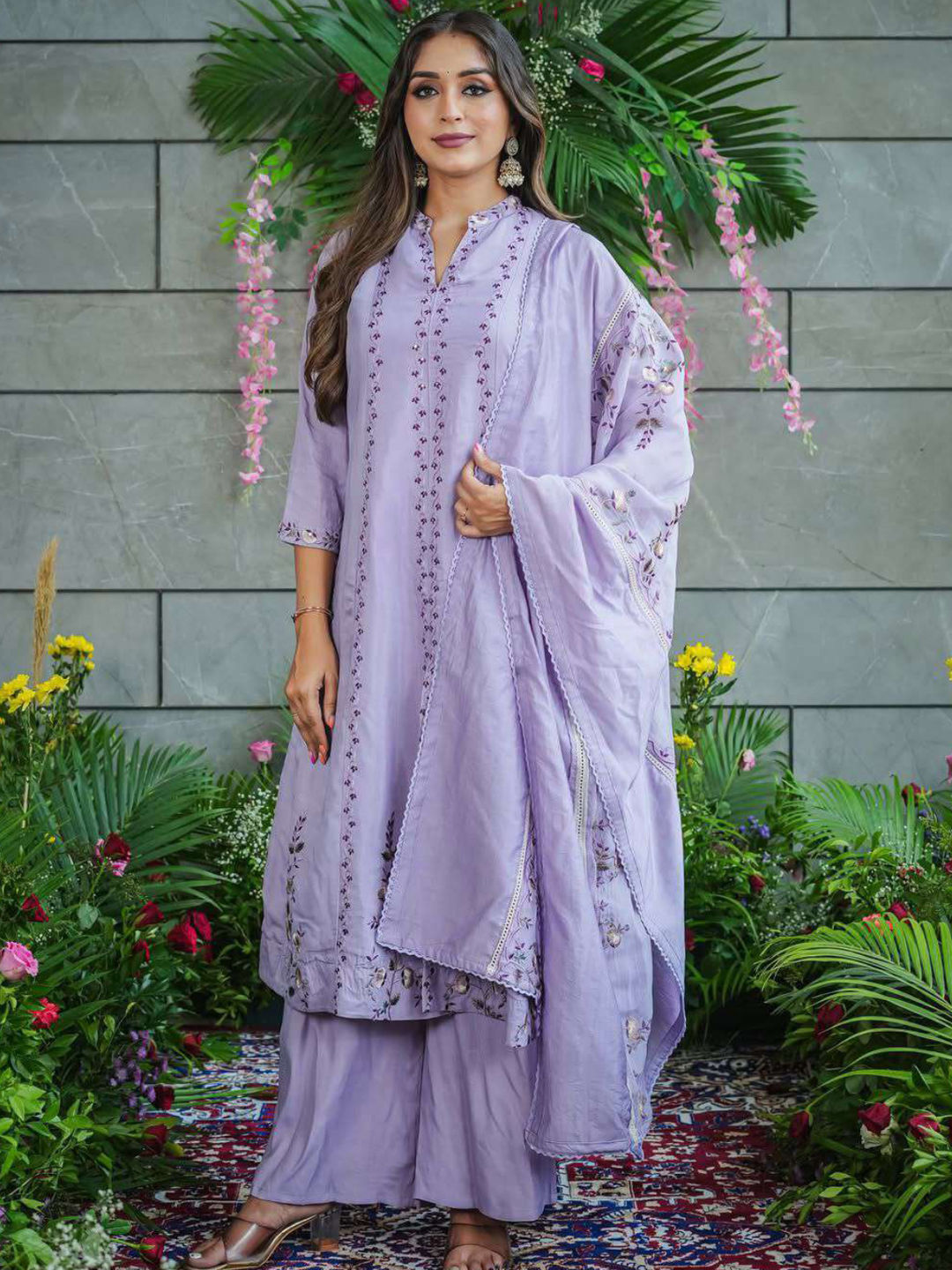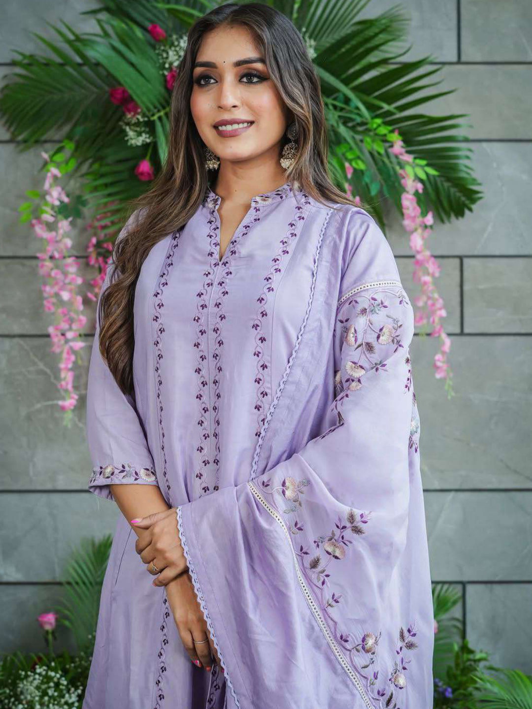 Purple and Violet color Salwar Kameez in Cotton, Muslin fabric with Embroidered work