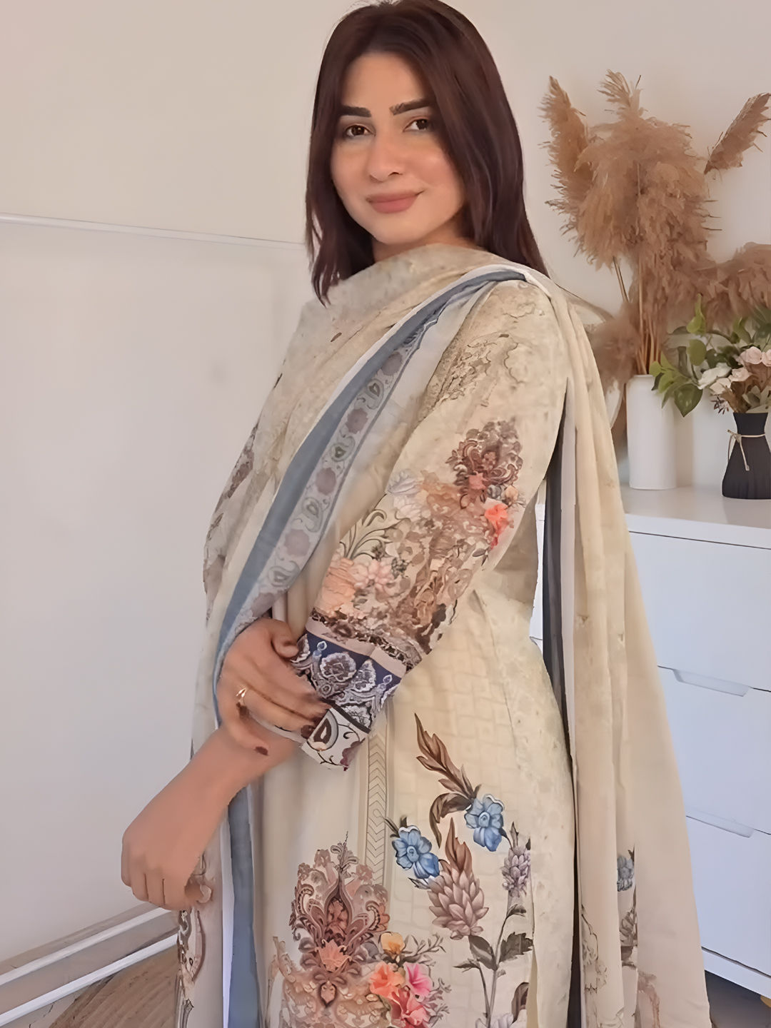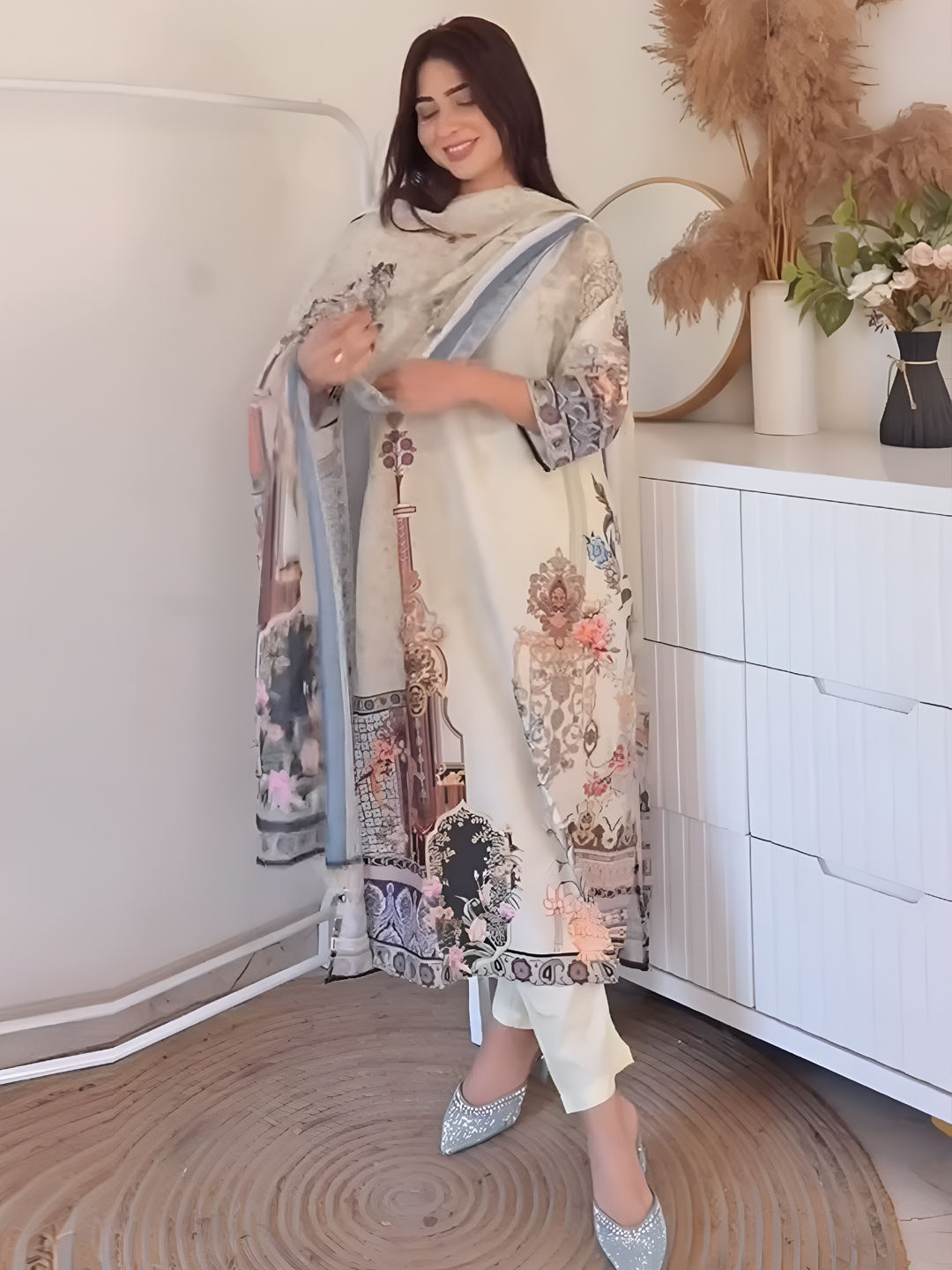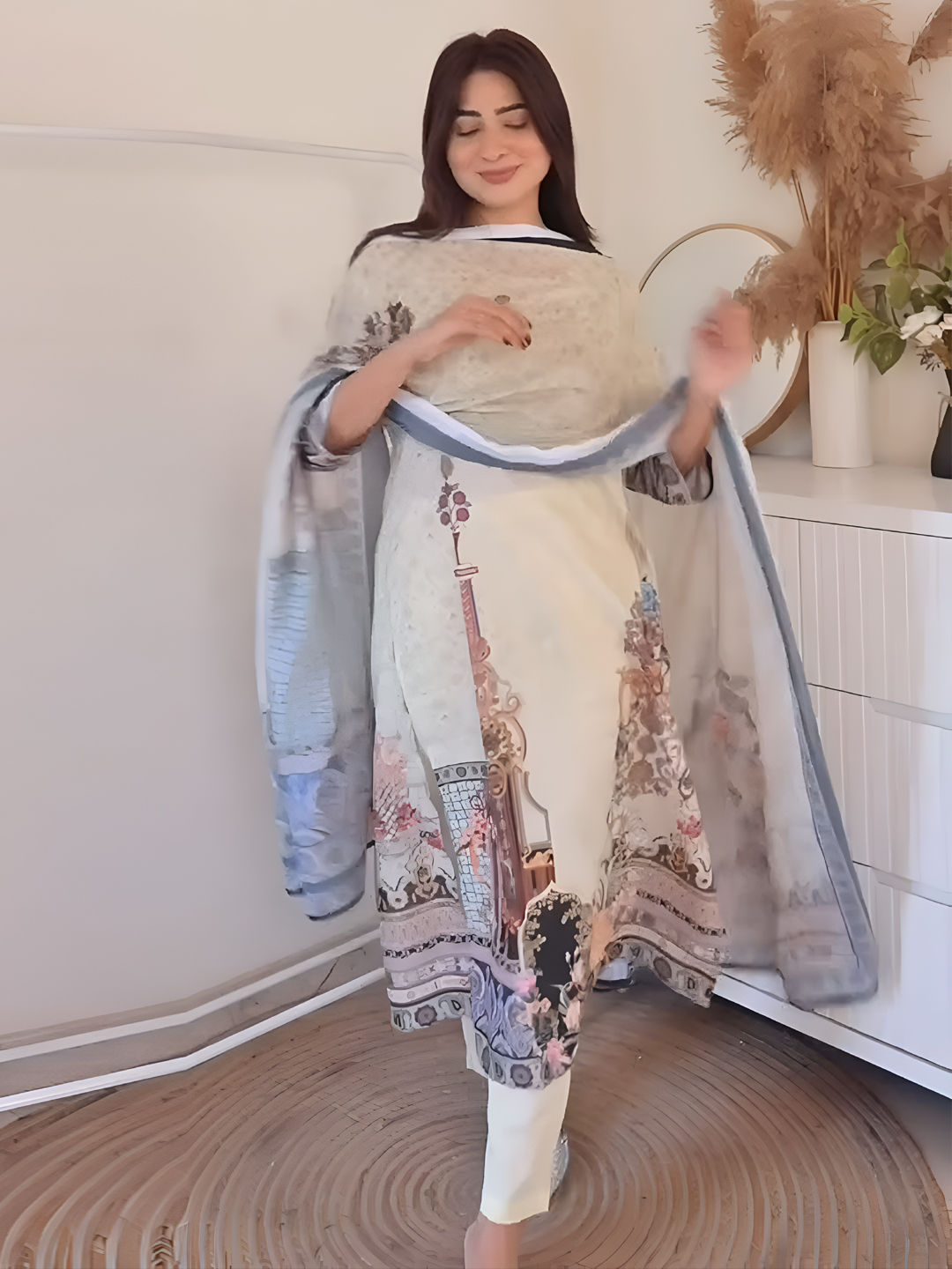 White and Off White color Salwar Kameez in Muslin fabric with Printed work