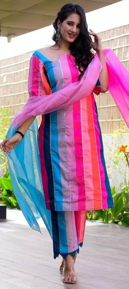 Multicolor color Salwar Kameez in Muslin fabric with Printed work