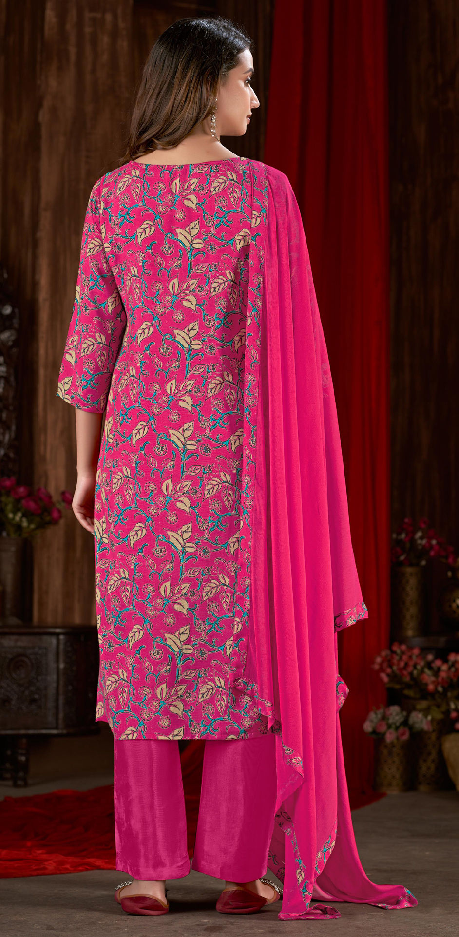 Pink and Majenta color Salwar Kameez in Muslin fabric with Printed work