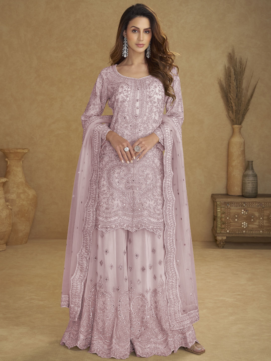 in Pink and Majenta with Embroidered work