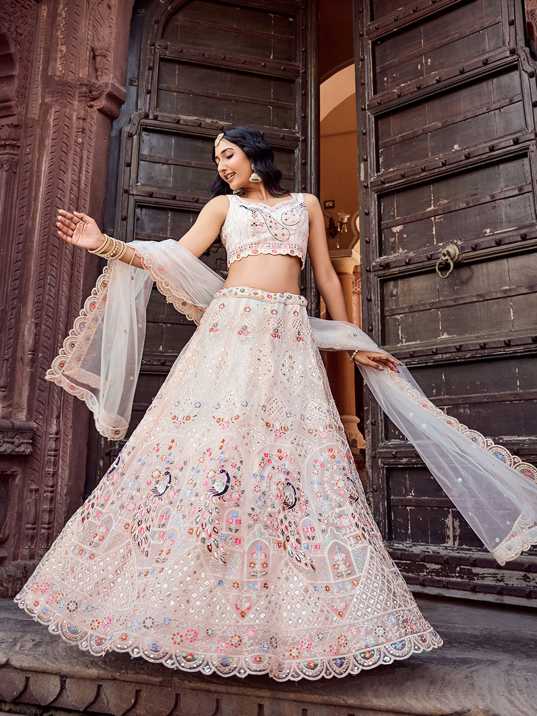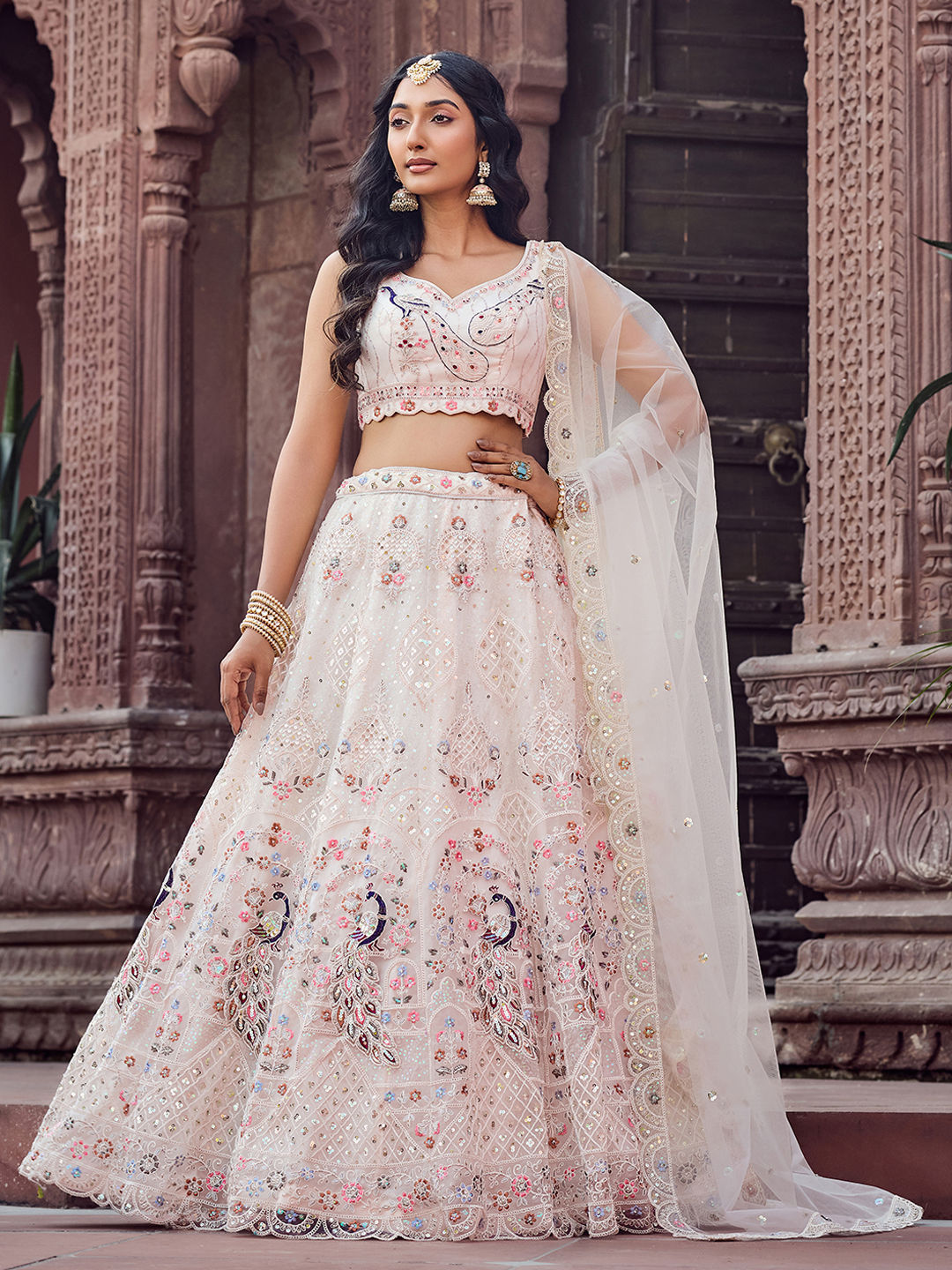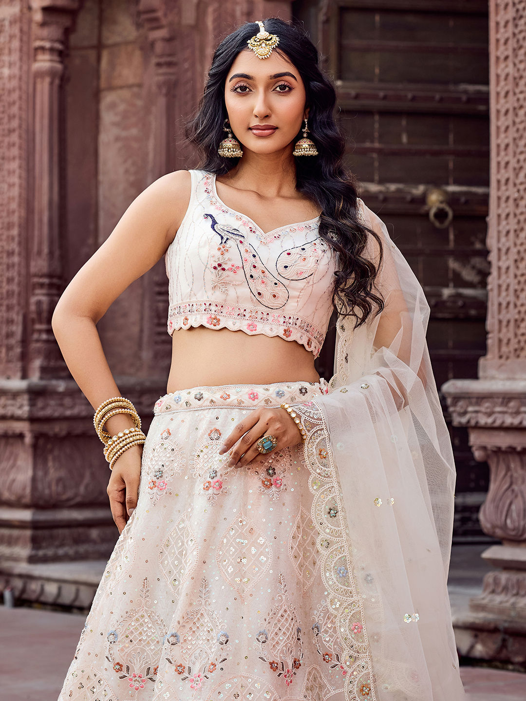 Beige and Brown color Lehenga in Net fabric with Embroidered, Sequence work
