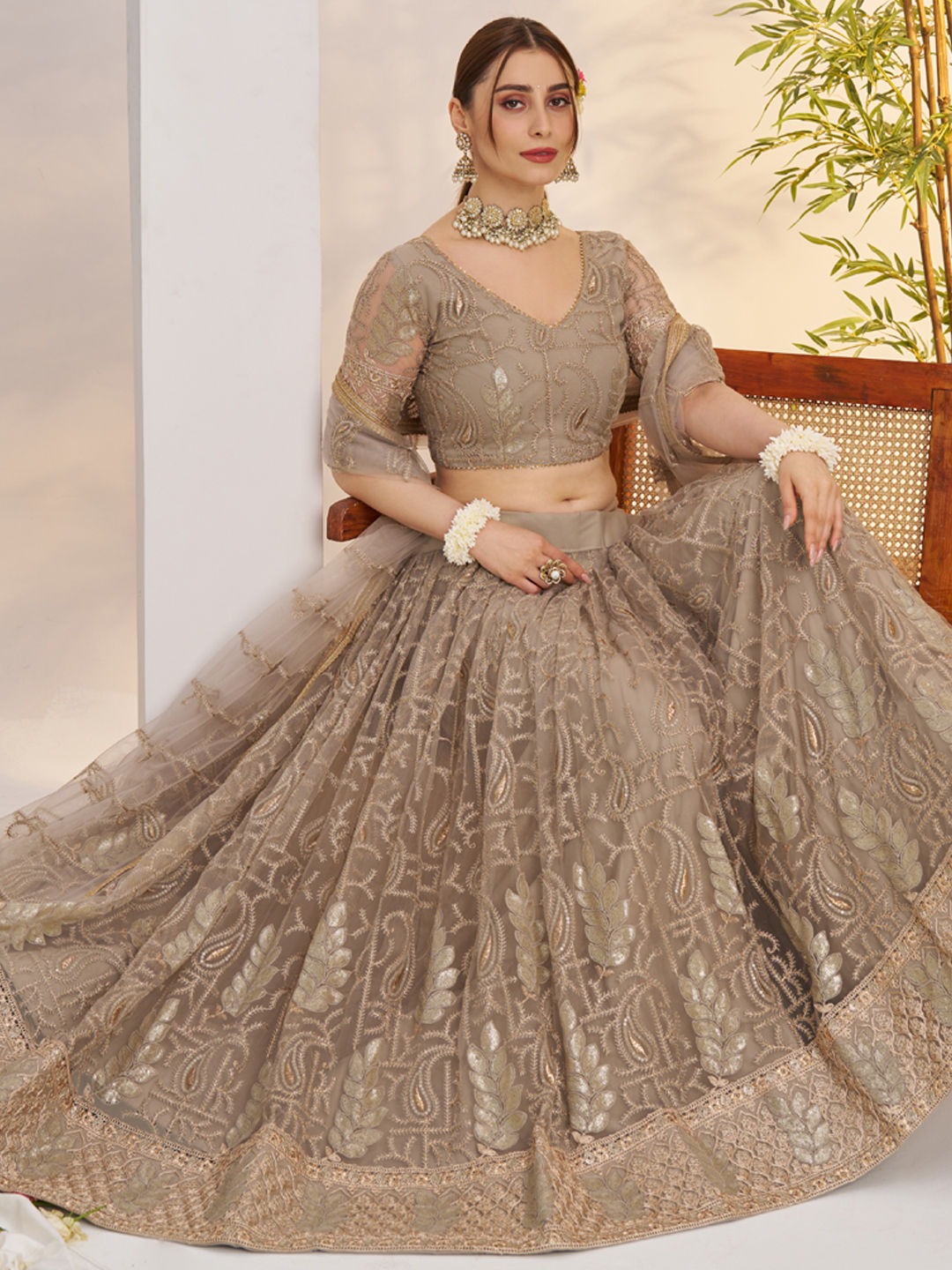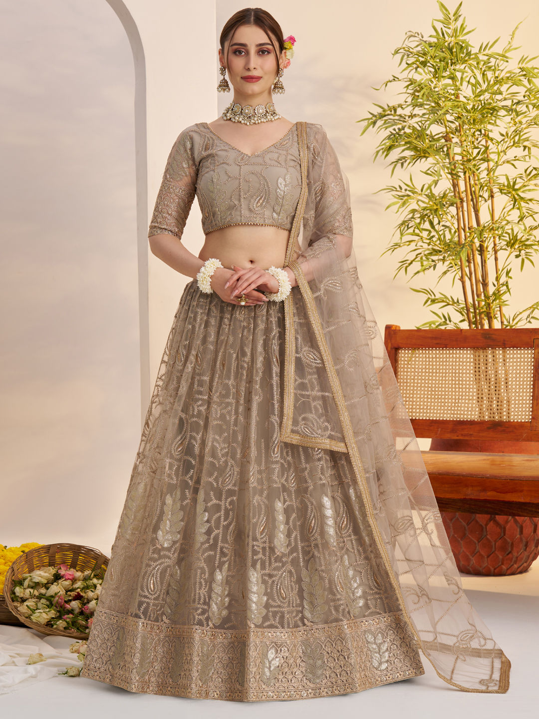 Black and Grey color Lehenga in Net fabric with Embroidered, Sequence, Thread work