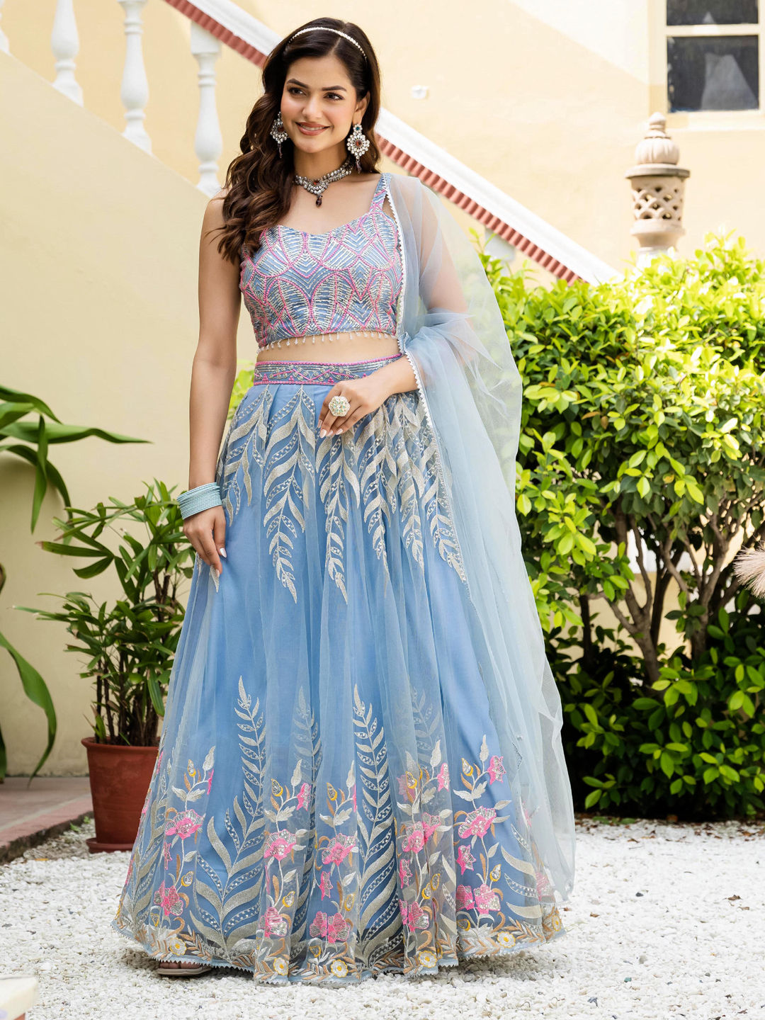 Blue color Lehenga in Net fabric with Embroidered, Sequence, Thread work