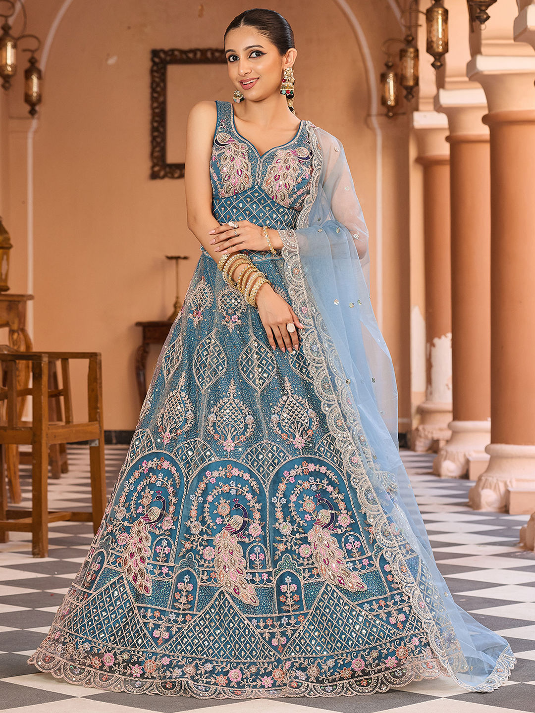 Blue color Lehenga in Net fabric with Embroidered, Sequence work