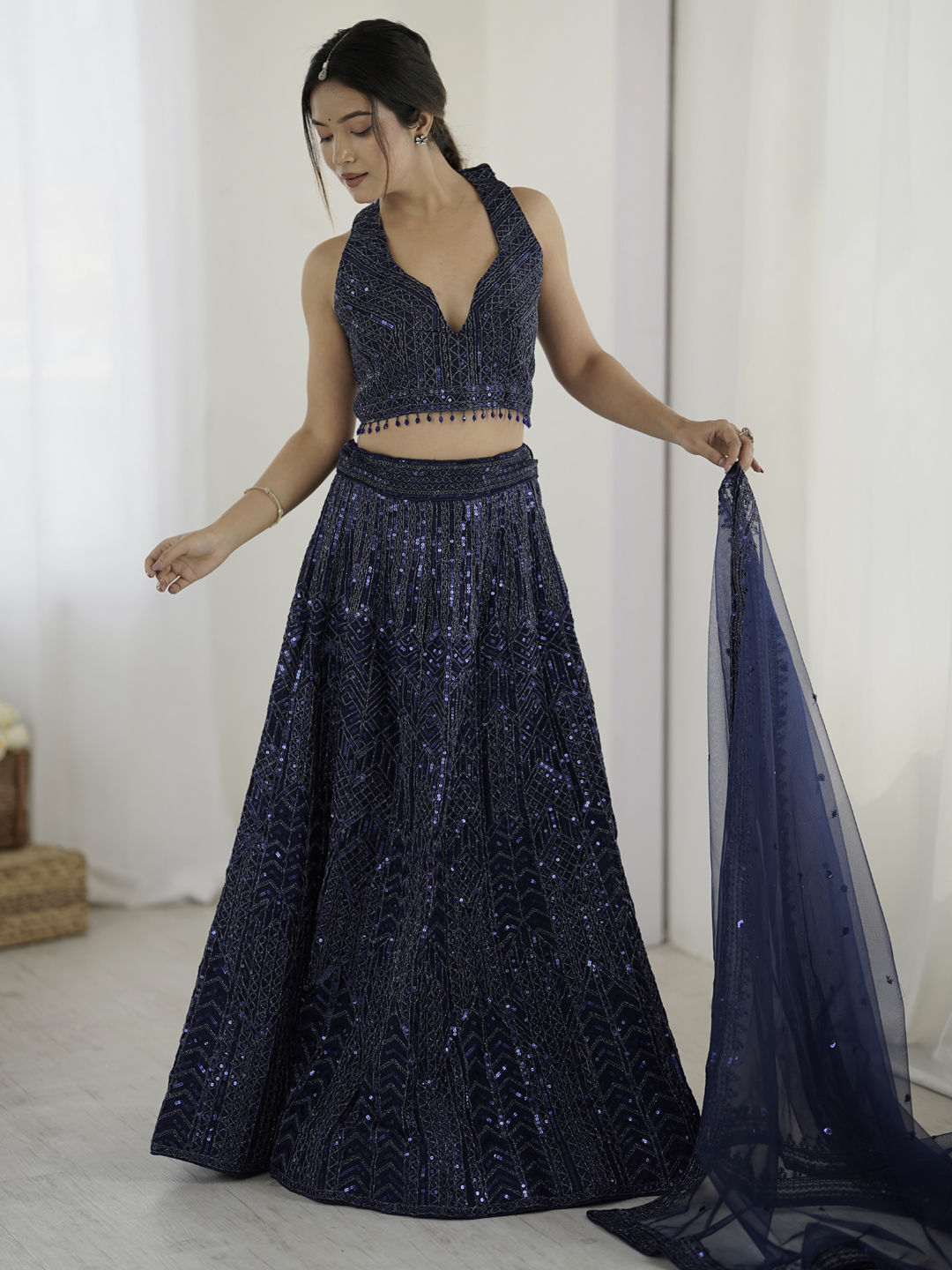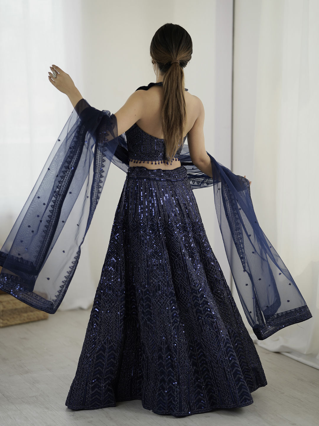 Blue color Lehenga in Net fabric with Sequence, Thread work