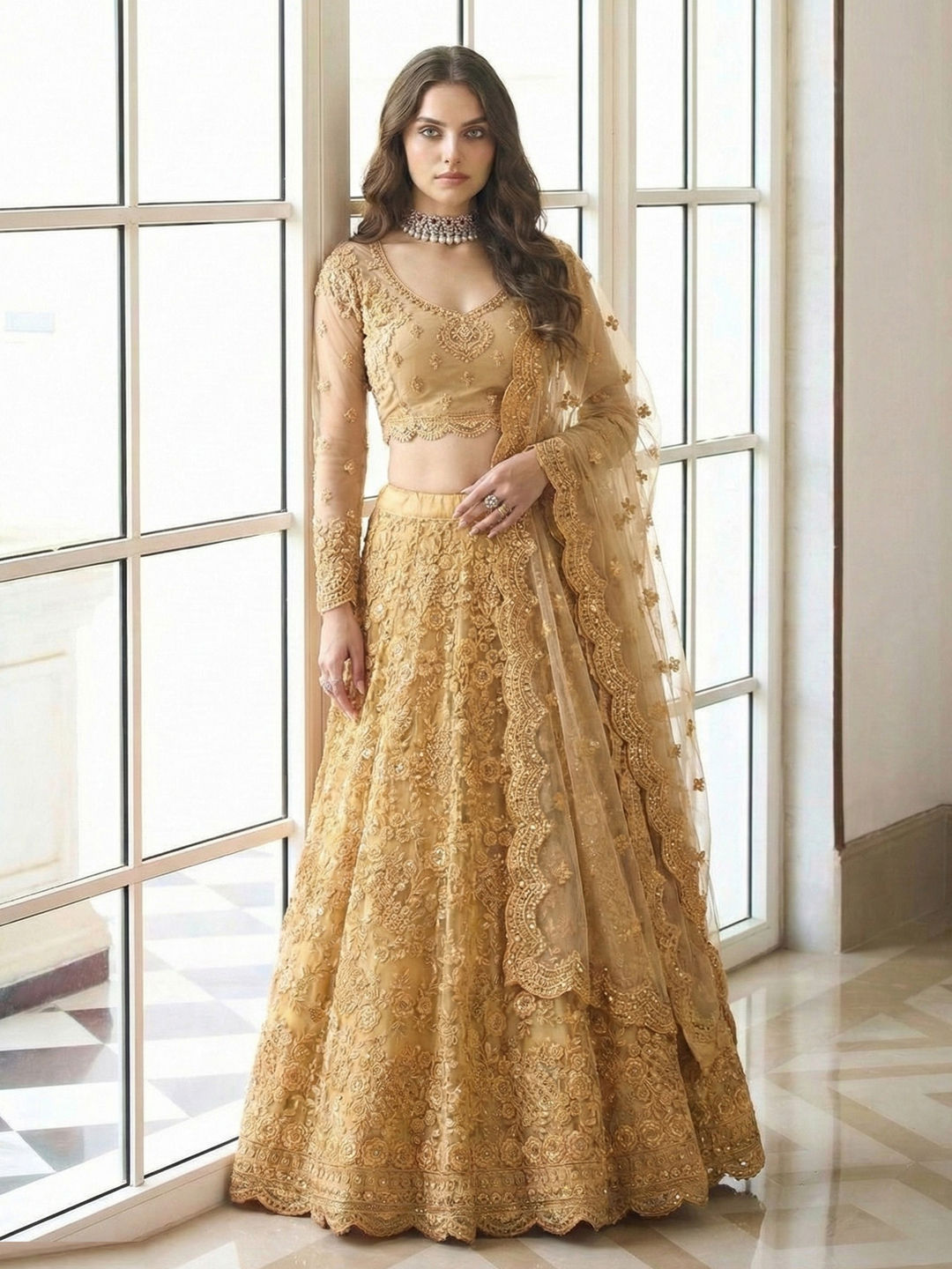 in Gold with Embroidered work