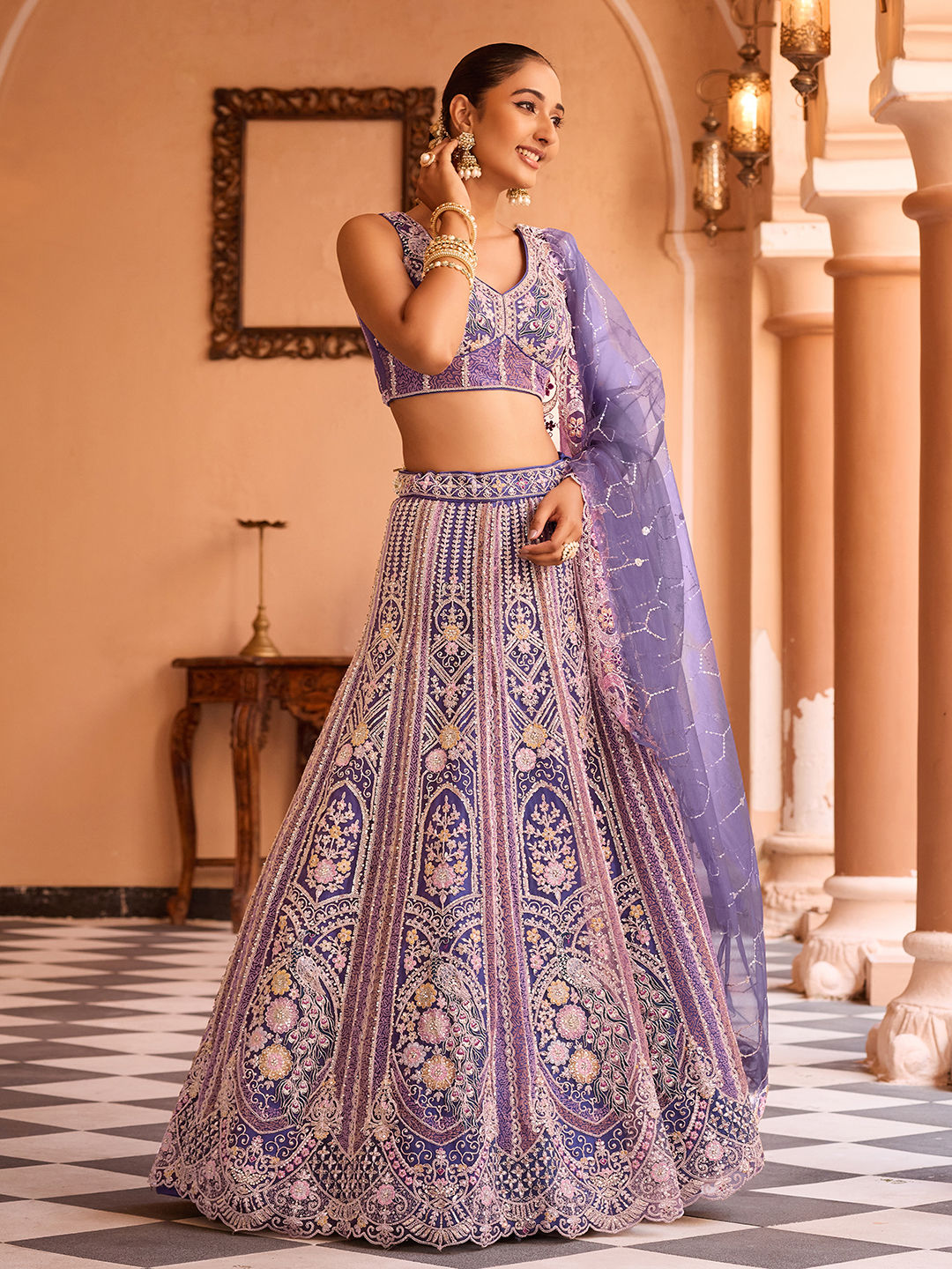 Purple and Violet color Lehenga in Net fabric with Embroidered, Sequence work