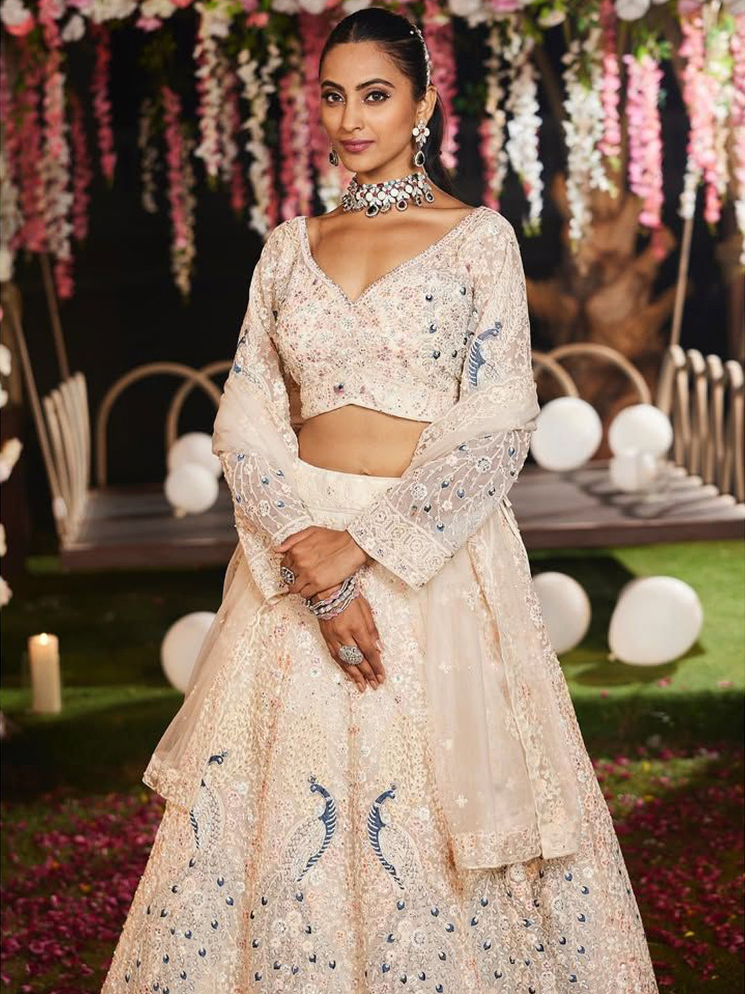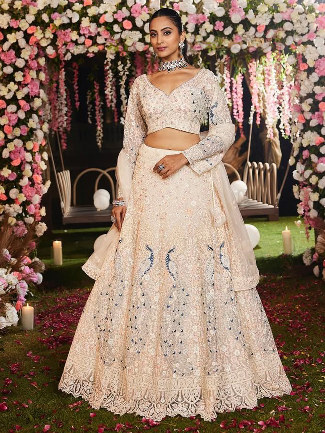 White and Off White color Lehenga in Net fabric with Embroidered, Sequence, Thread work