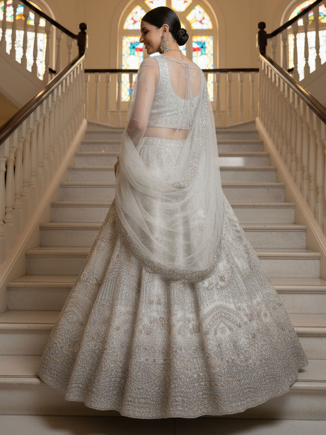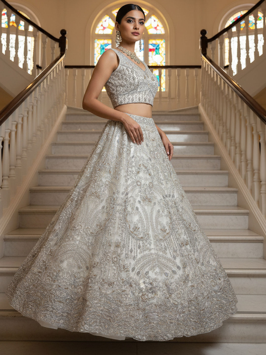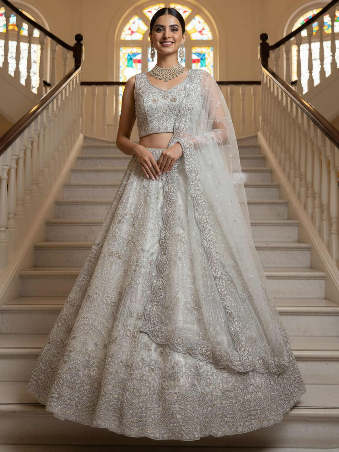 in White and Off White with Thread work