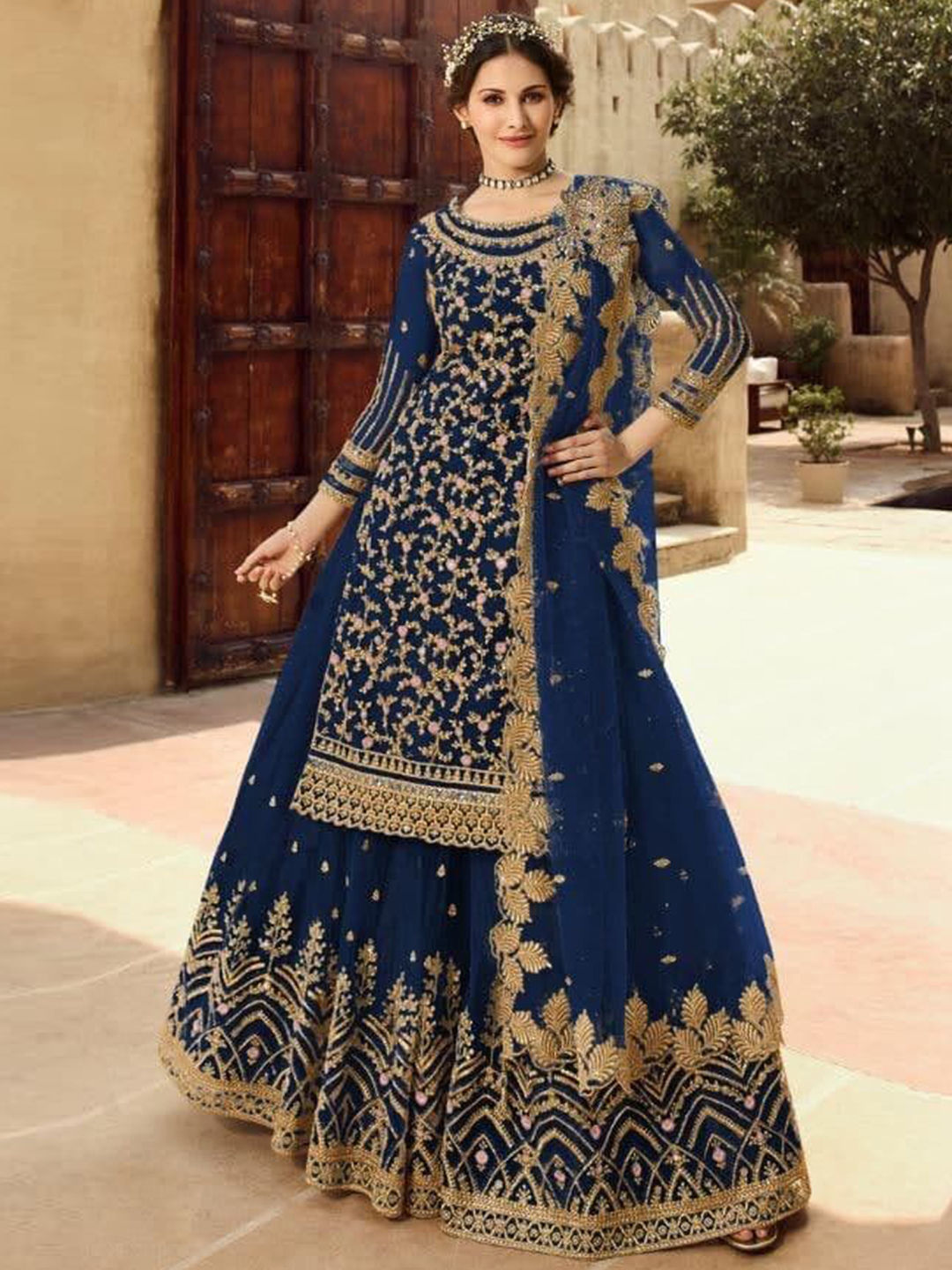 Net Bridal Salwar Kameez in Blue with Embroidered work