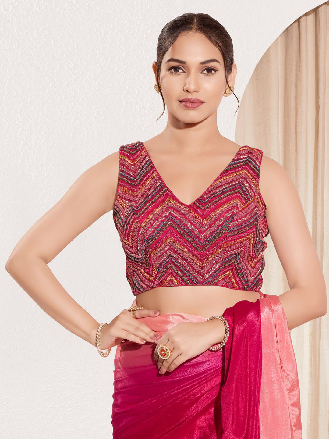 Pink and Majenta color Blouse in Net fabric with Embroidered, Thread work