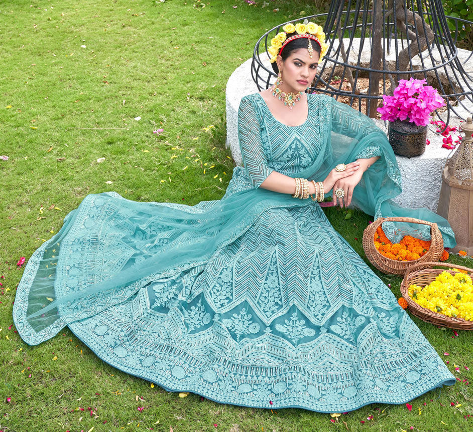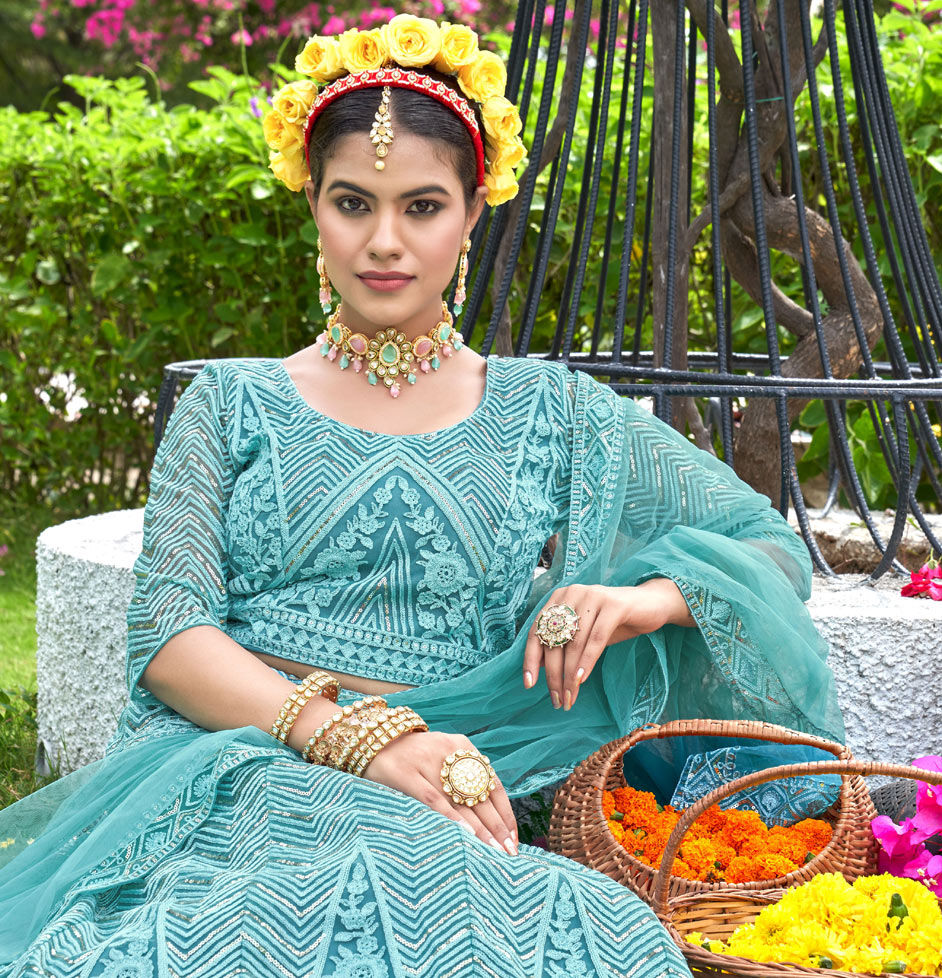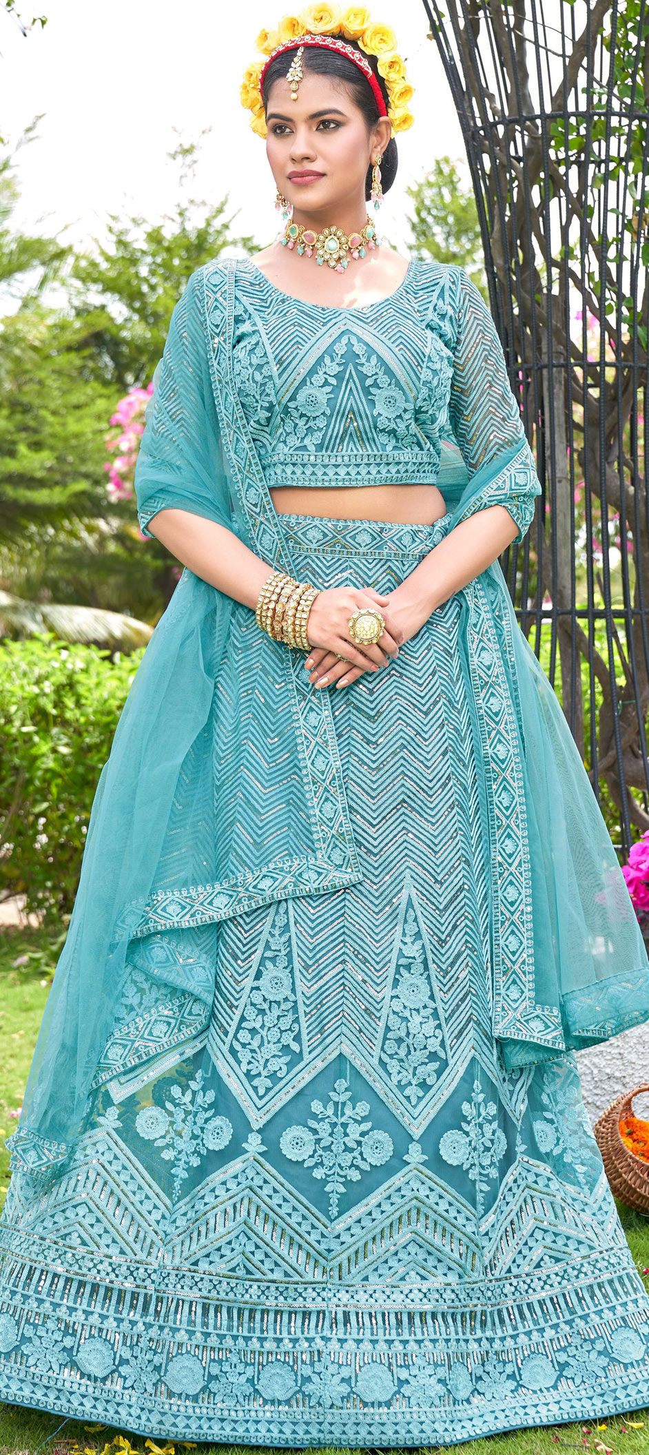 Blue color Lehenga in Net fabric with Embroidered, Lace, Sequence, Thread work