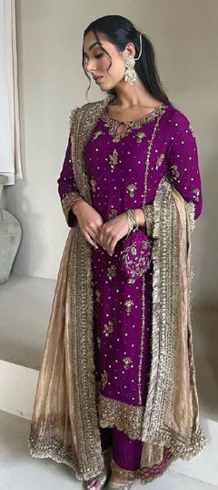 Net Party Wear Salwar Kameez in Purple and Violet with Thread work
