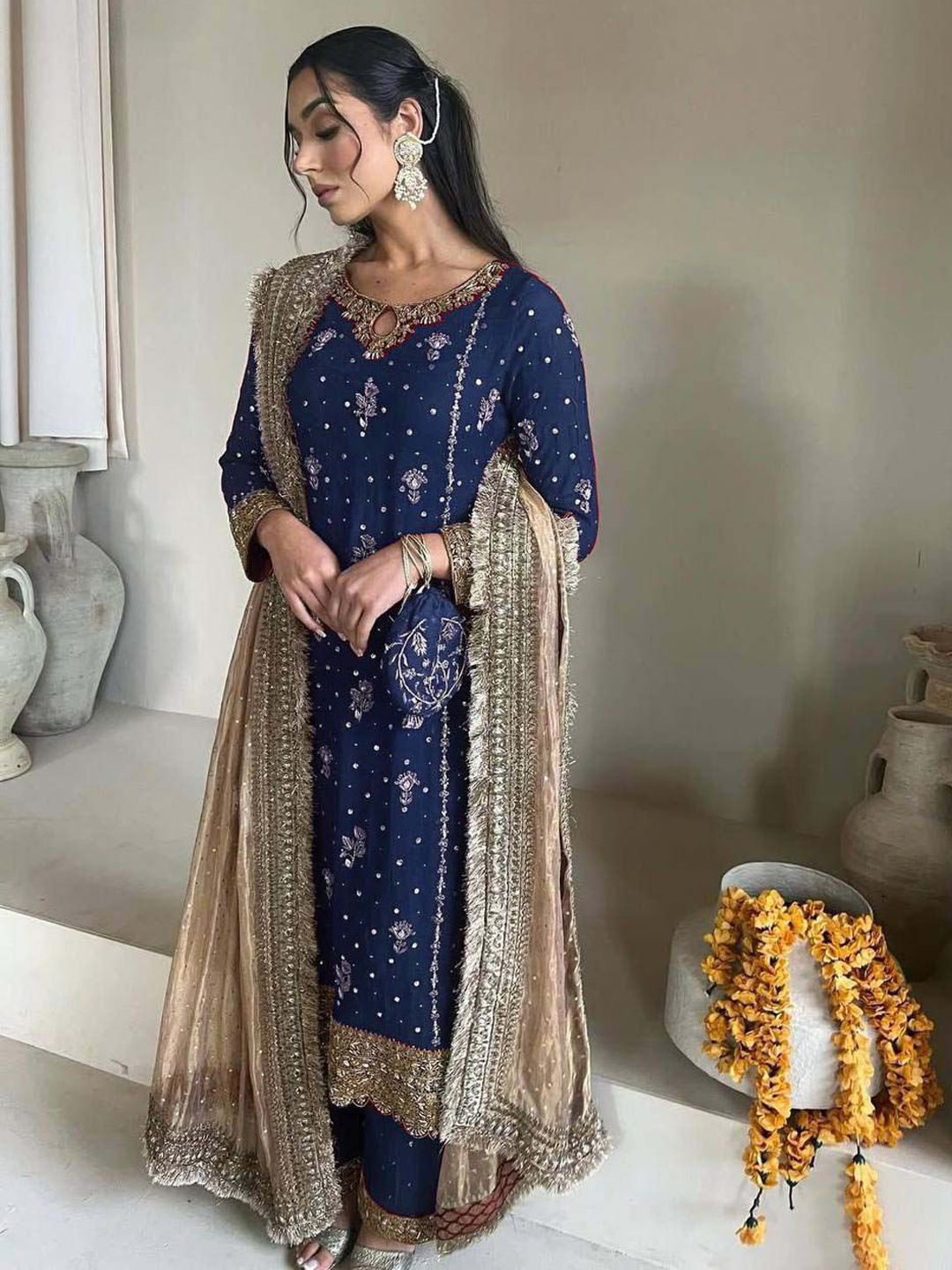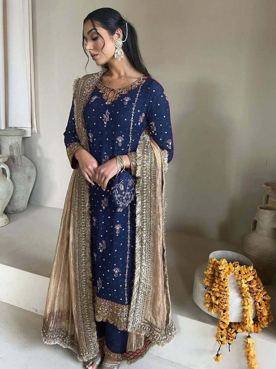 in Blue with Embroidered work