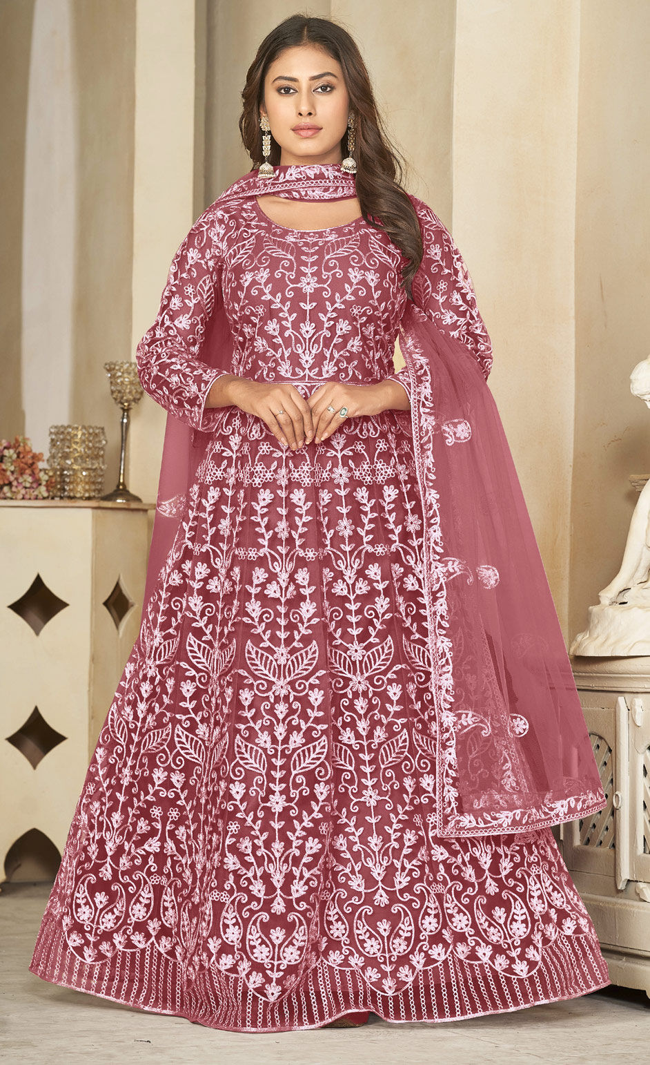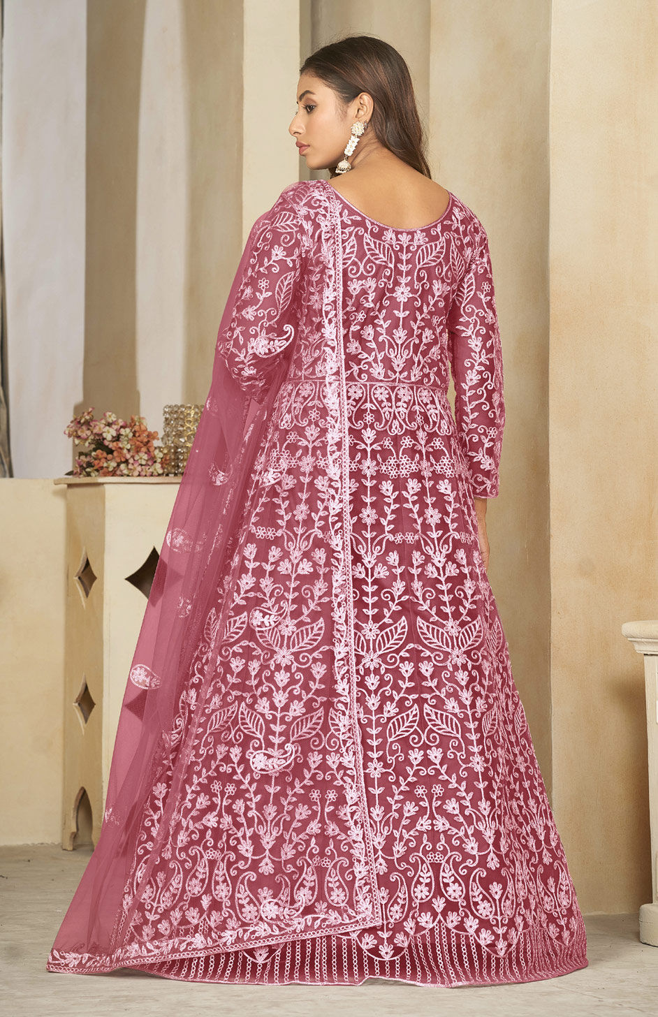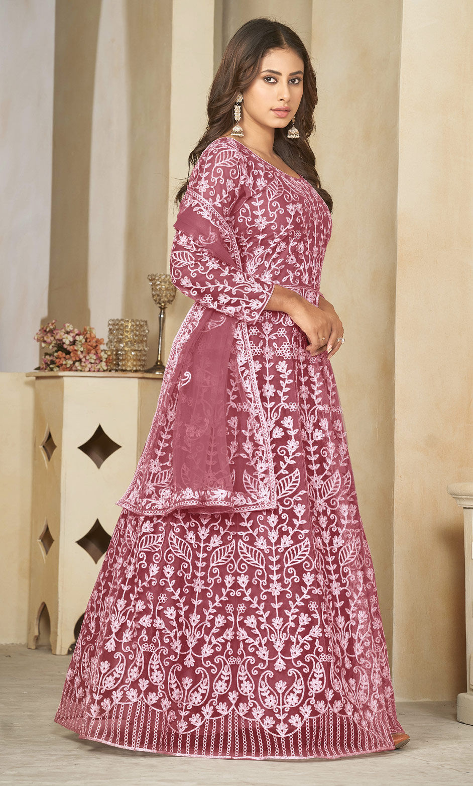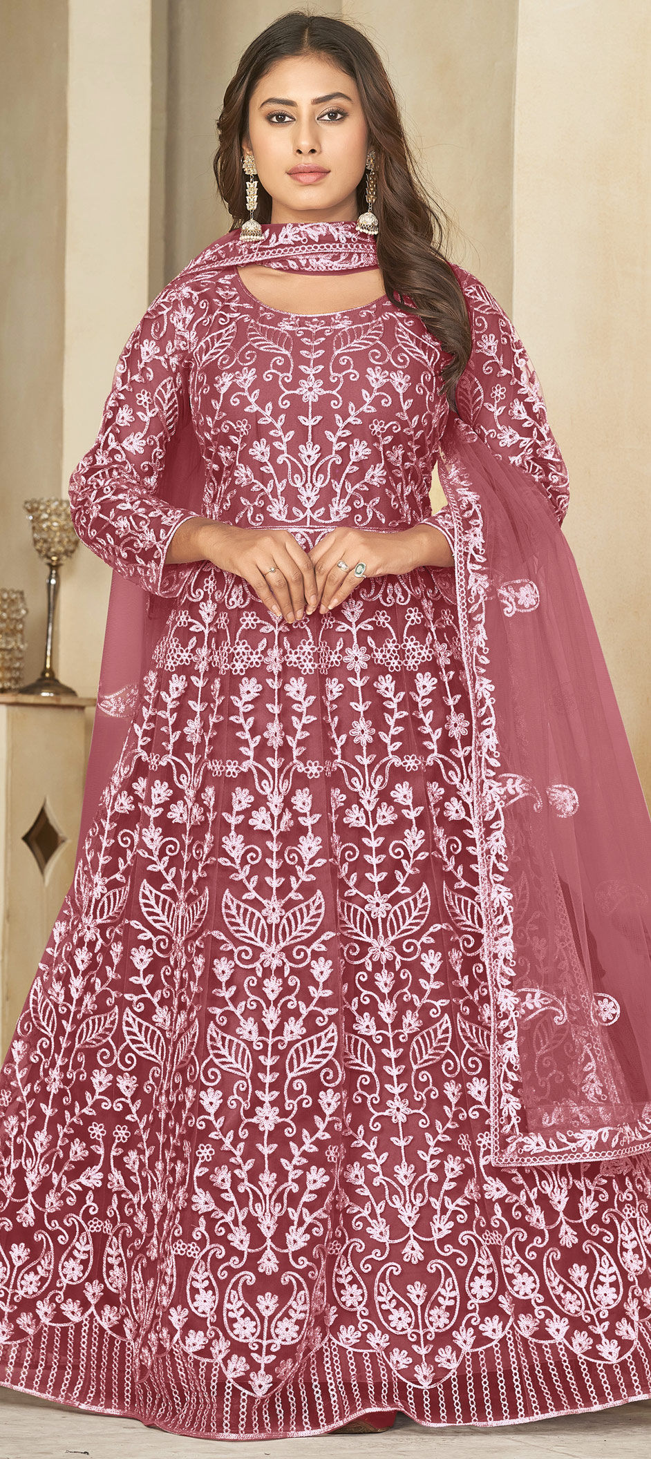Pink and Majenta color Salwar Kameez in Net fabric with Embroidered, Resham, Thread work