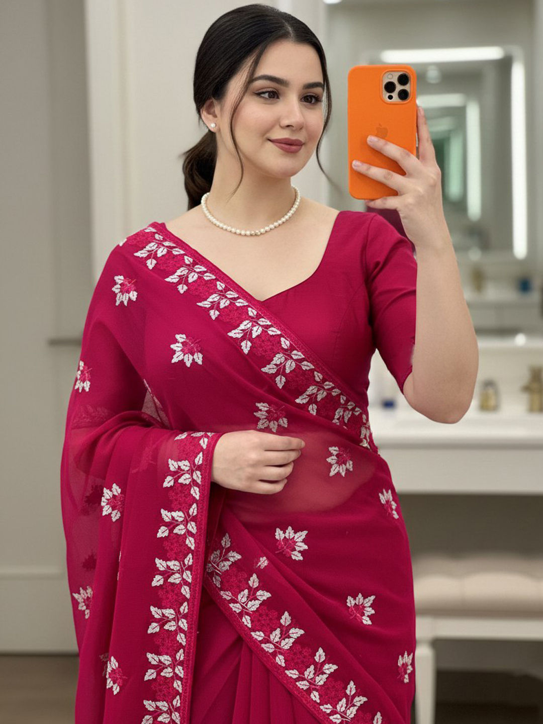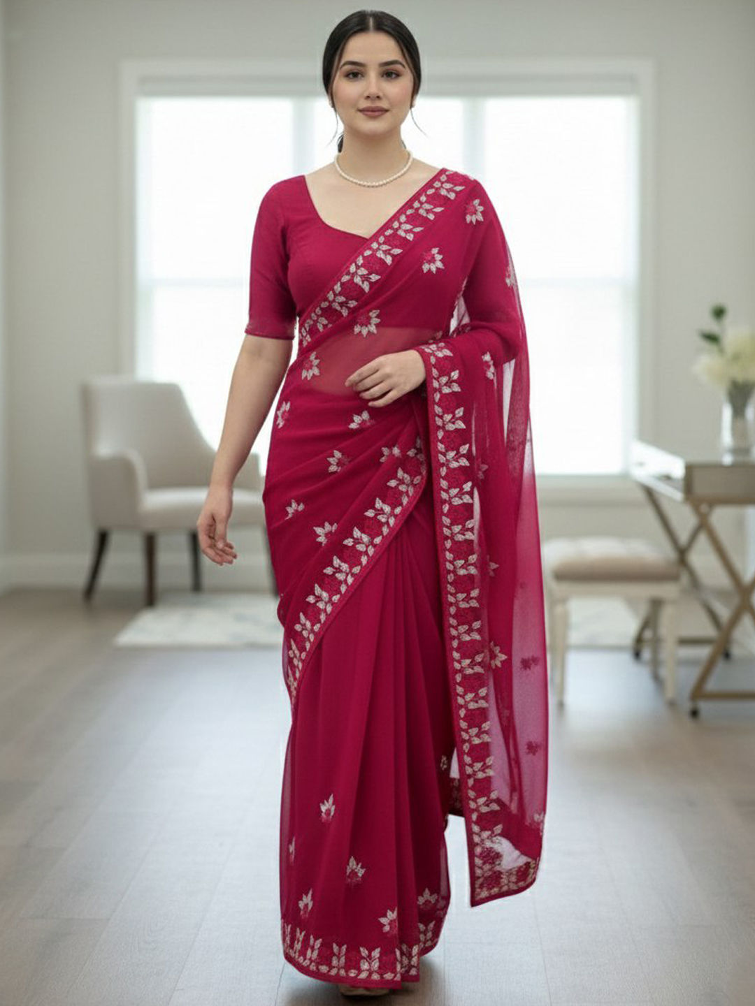 in Pink and Majenta with Embroidered work