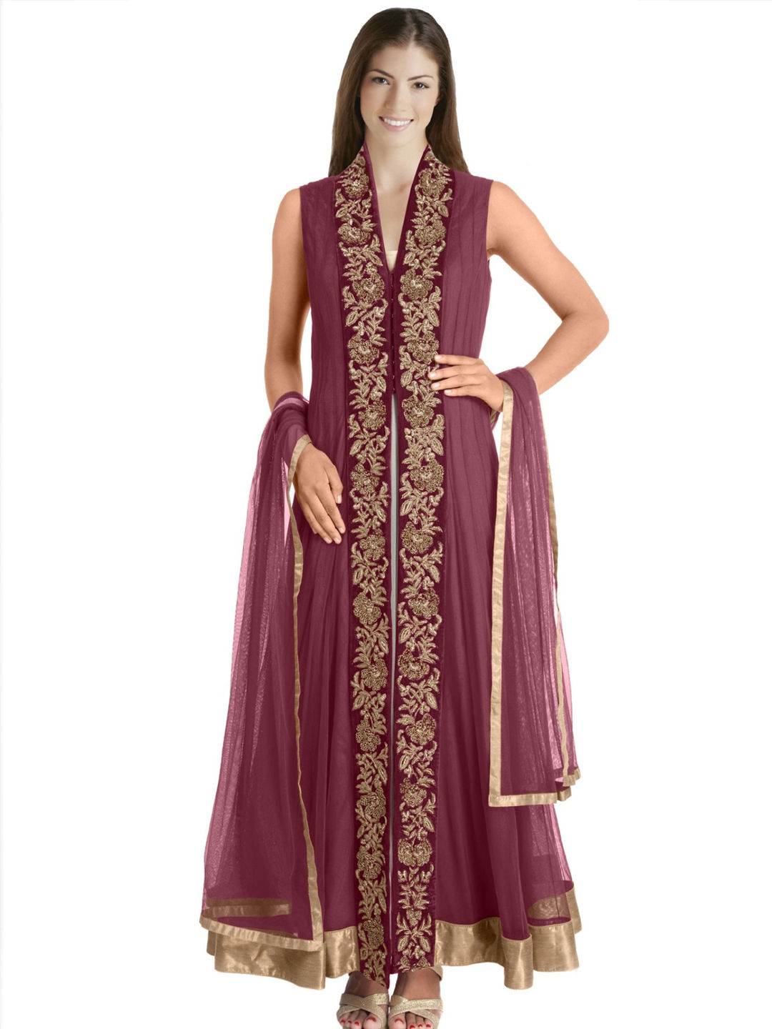 Purple and Violet color Salwar Kameez in Net fabric with Embroidered, Sequence, Thread work