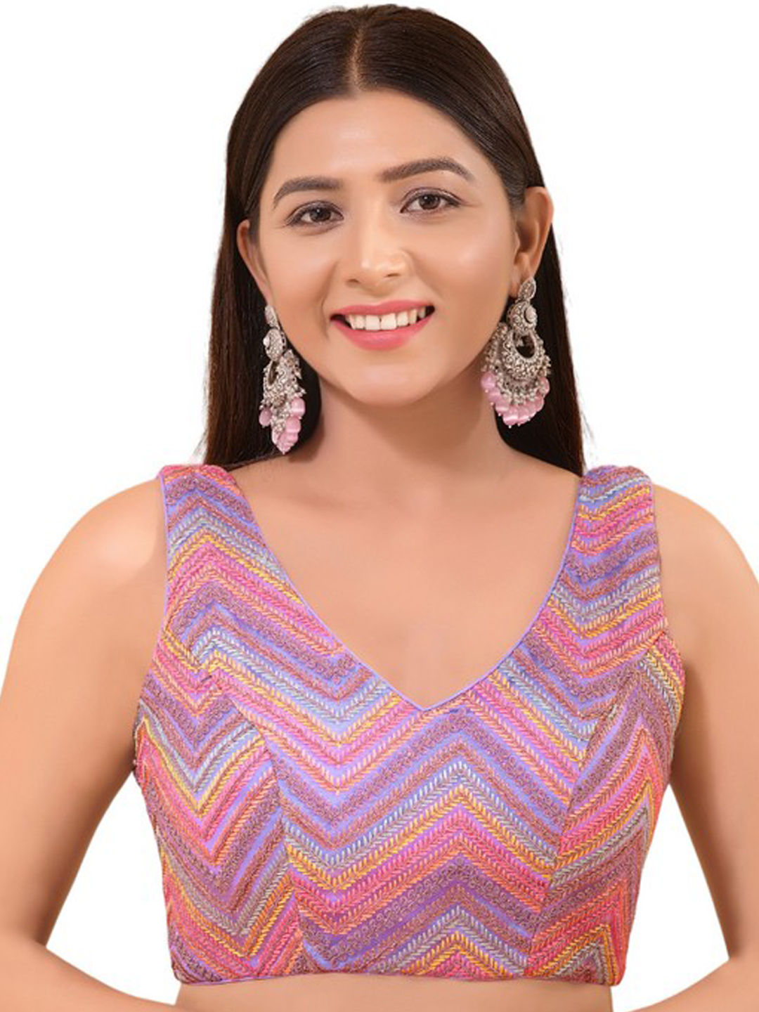 Purple and Violet color Blouse in Net fabric with Embroidered, Resham, Thread work