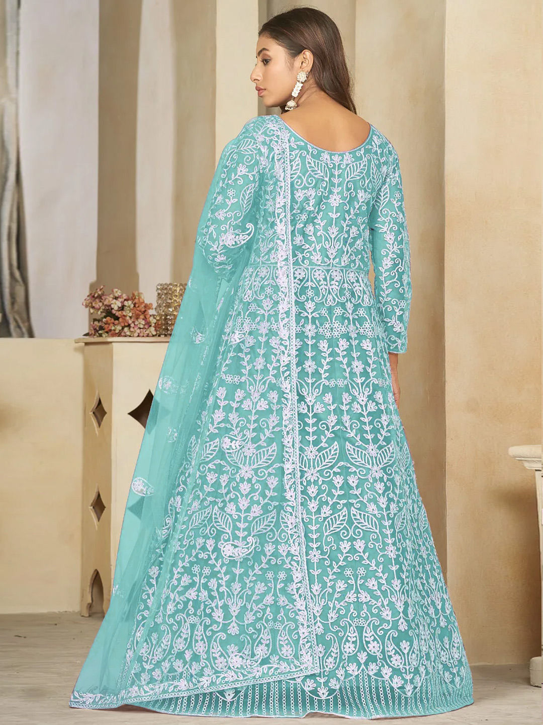 Blue color Salwar Kameez in Net fabric with Embroidered, Resham, Thread work