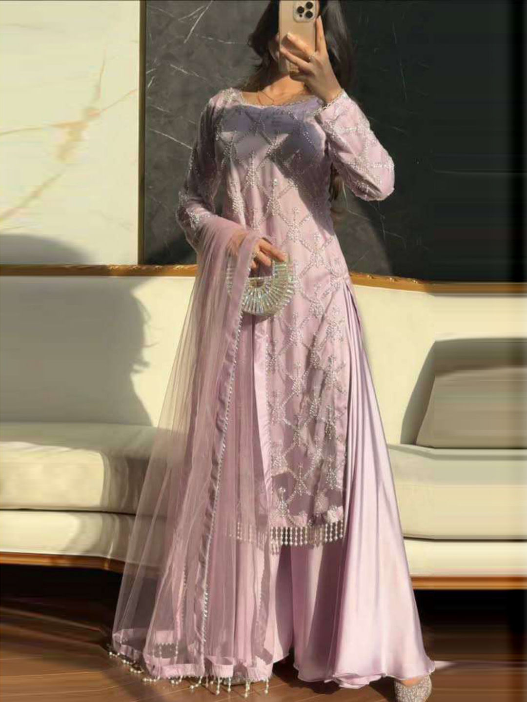 Pink and Majenta color Salwar Kameez in Net fabric with Embroidered, Thread work