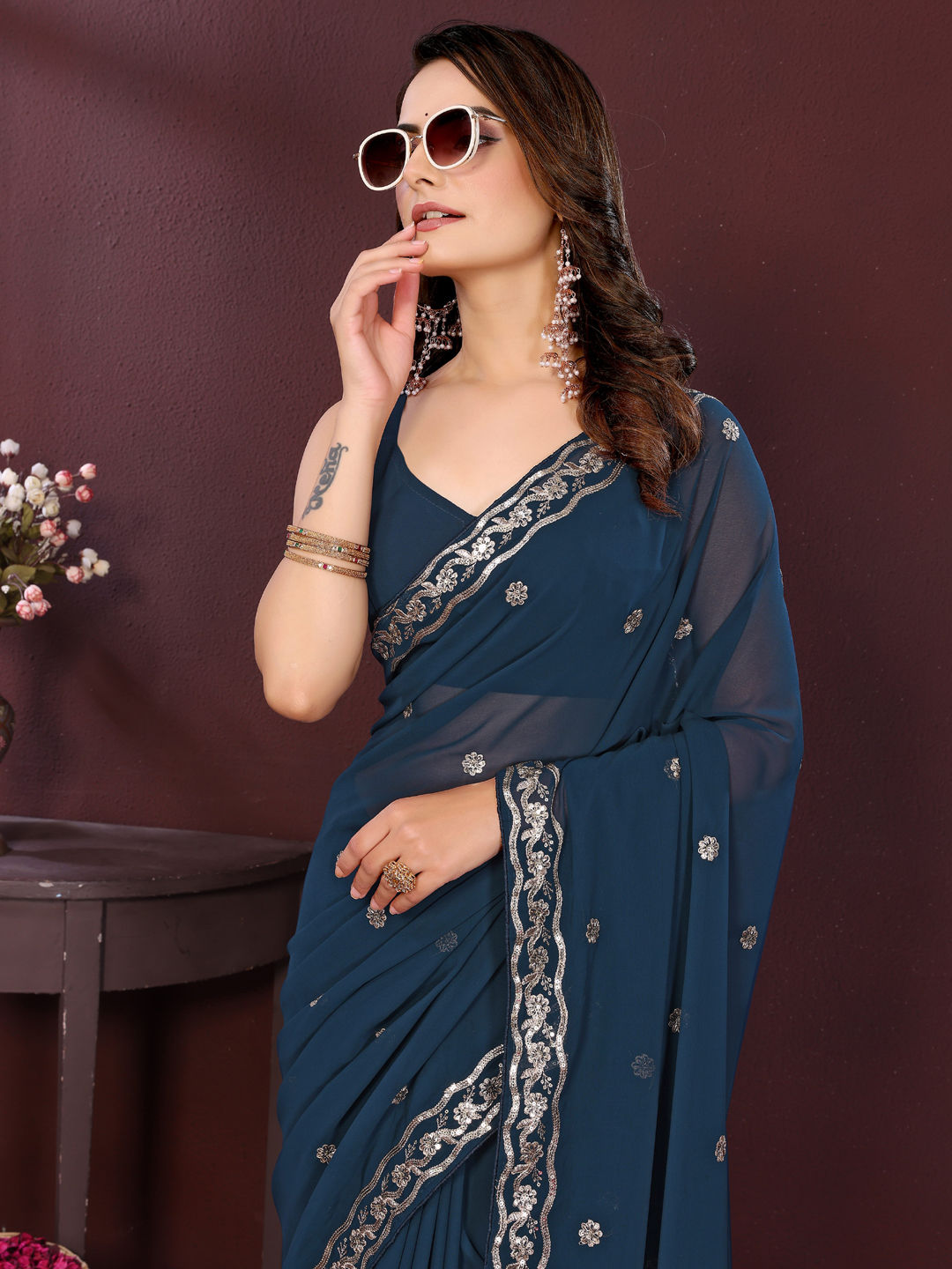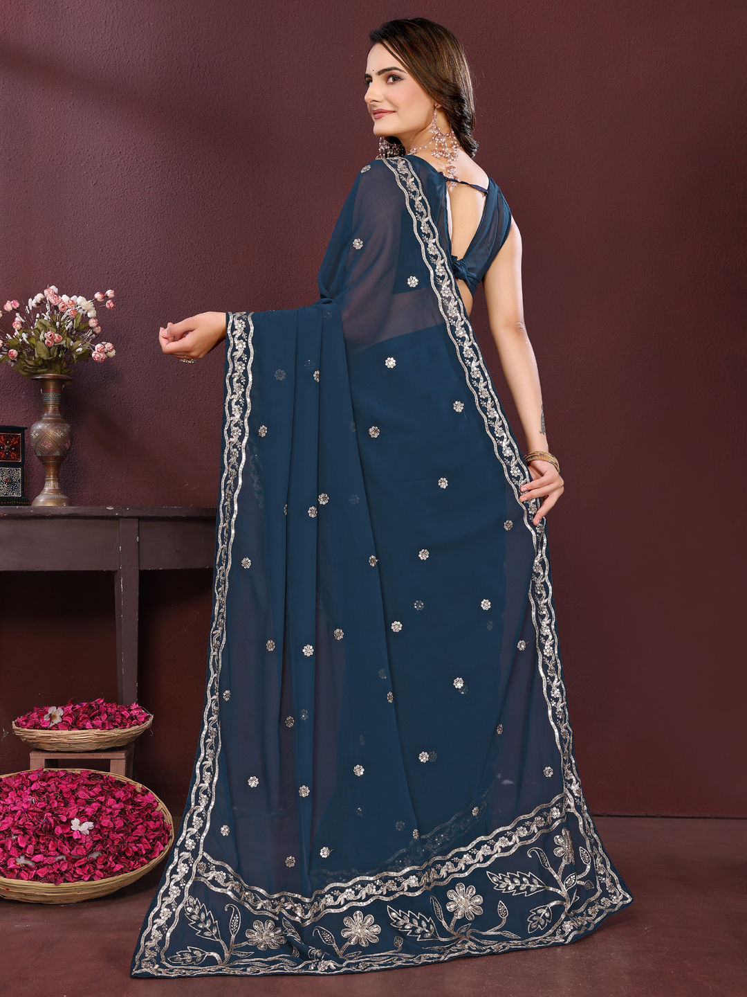 Blue color Saree in Net fabric with Embroidered, Sequence, Thread work