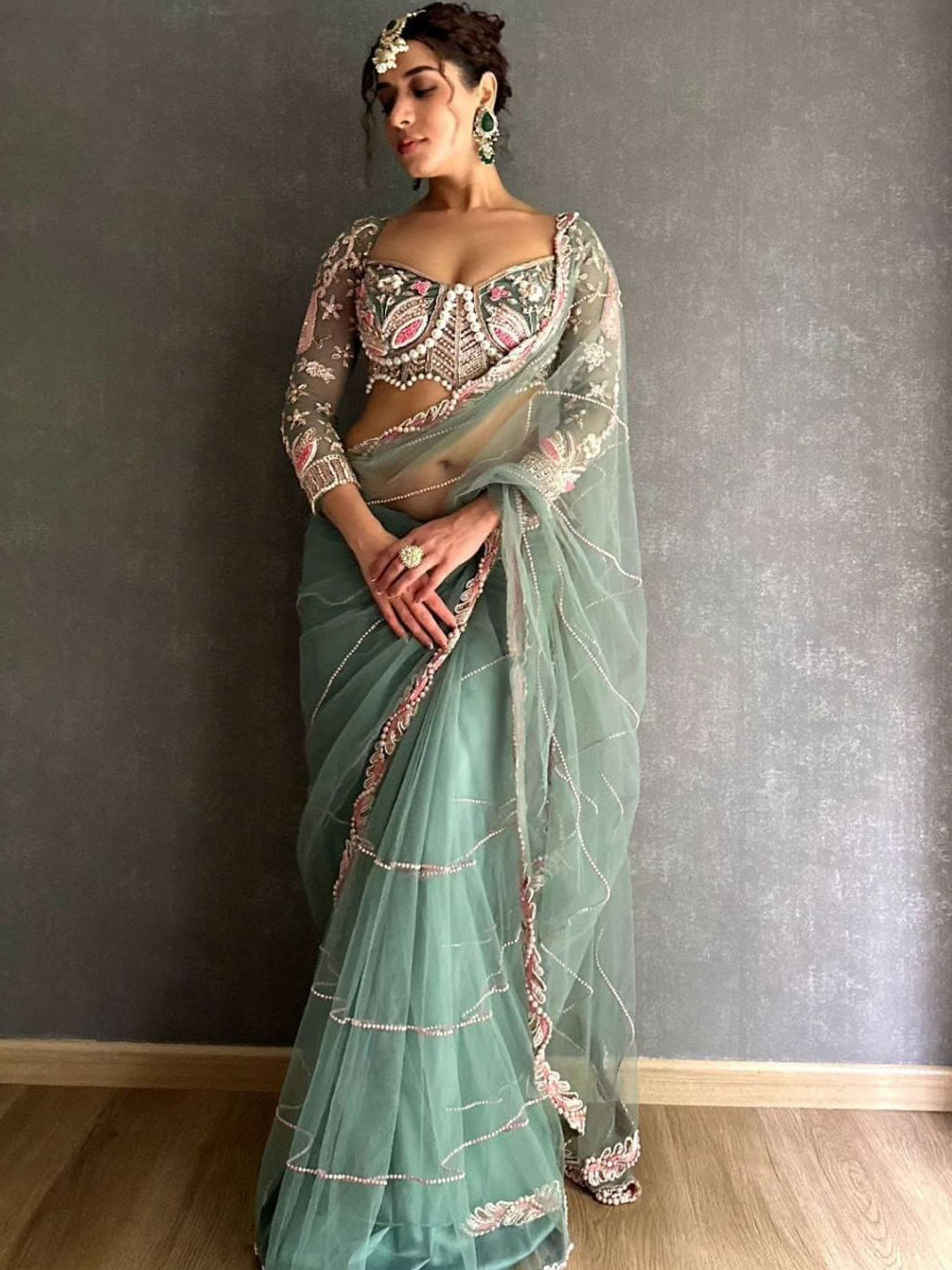 in Green with Embroidered work