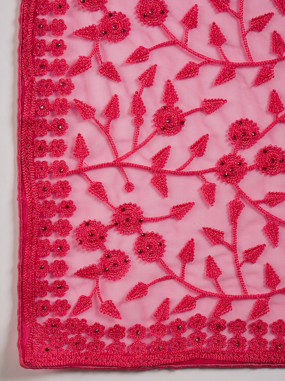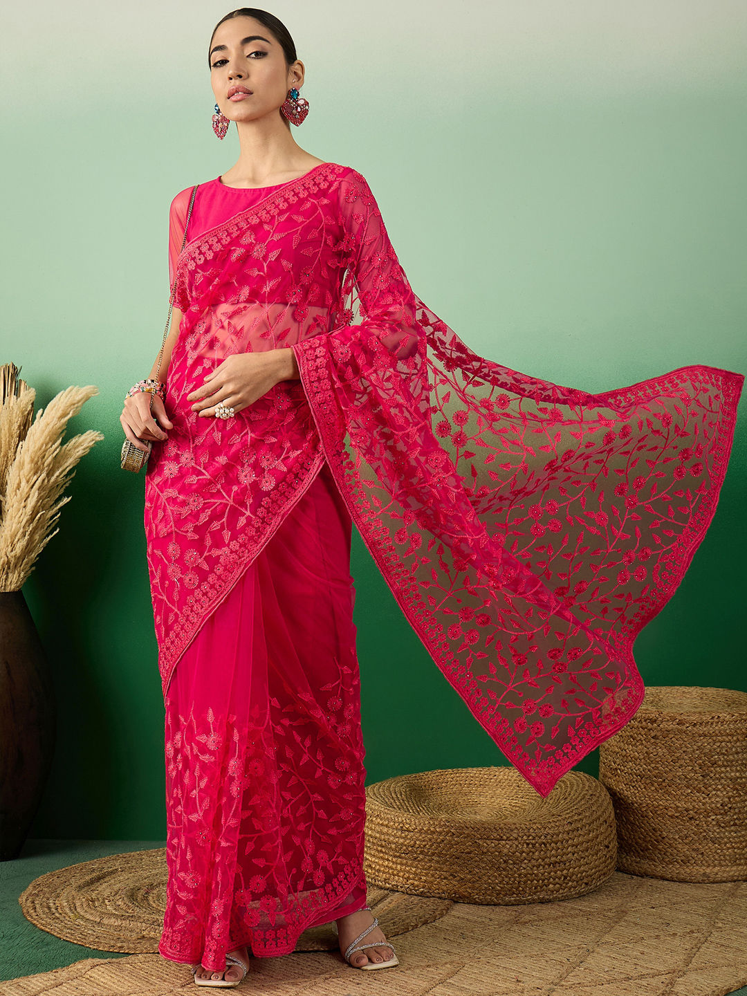Net Party Wear Saree in Pink and Majenta with Thread work