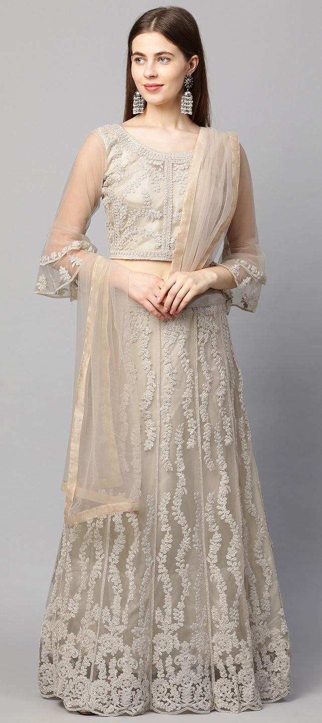 White and Off White color Lehenga in Net fabric with Embroidered, Resham, Thread work