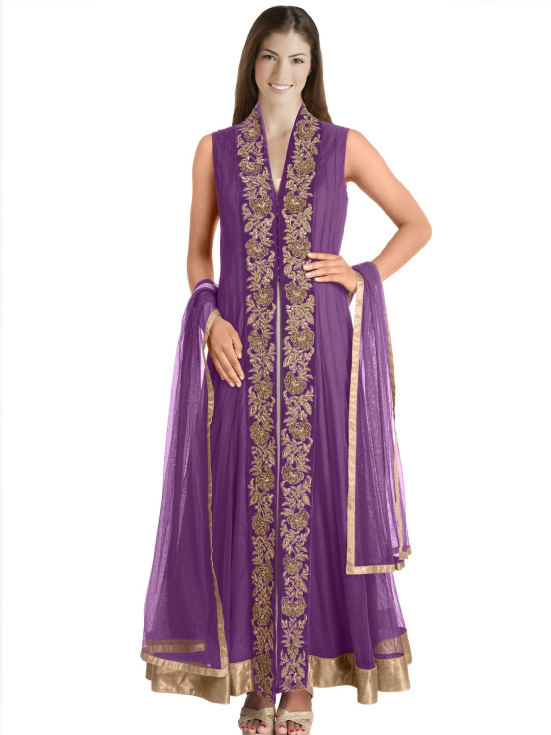 Purple and Violet color Salwar Kameez in Net fabric with Embroidered, Sequence, Thread work