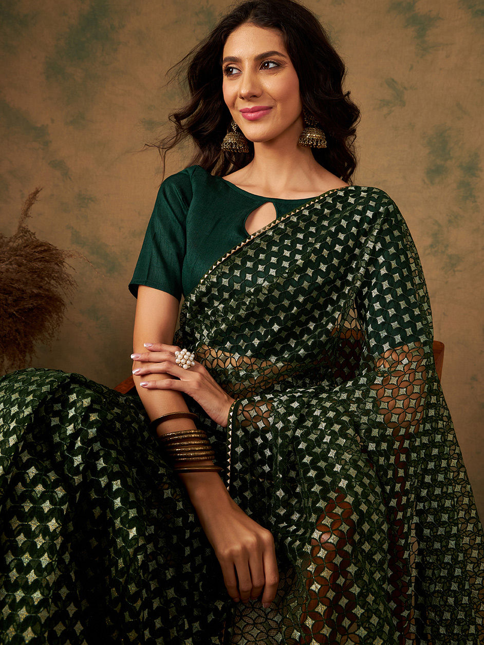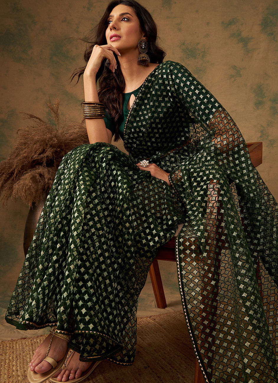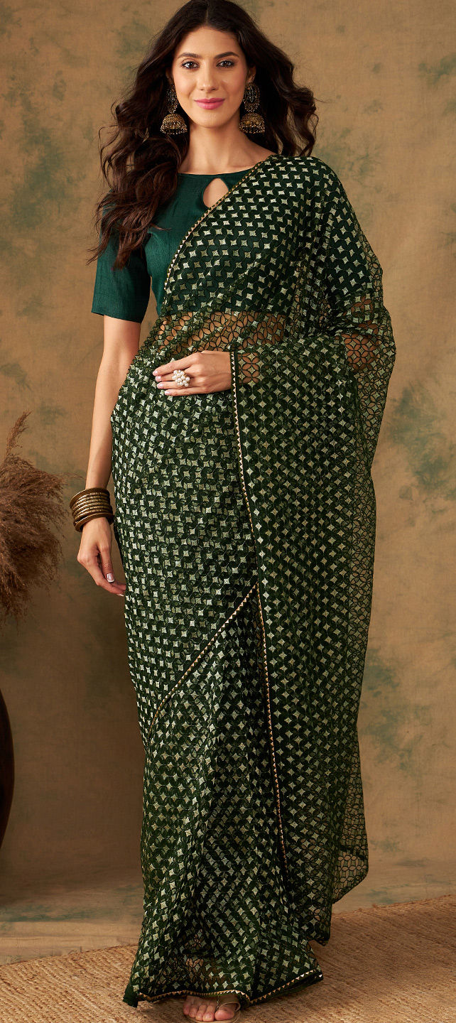 Green color Saree in Net fabric with Embroidered, Thread, Zari work