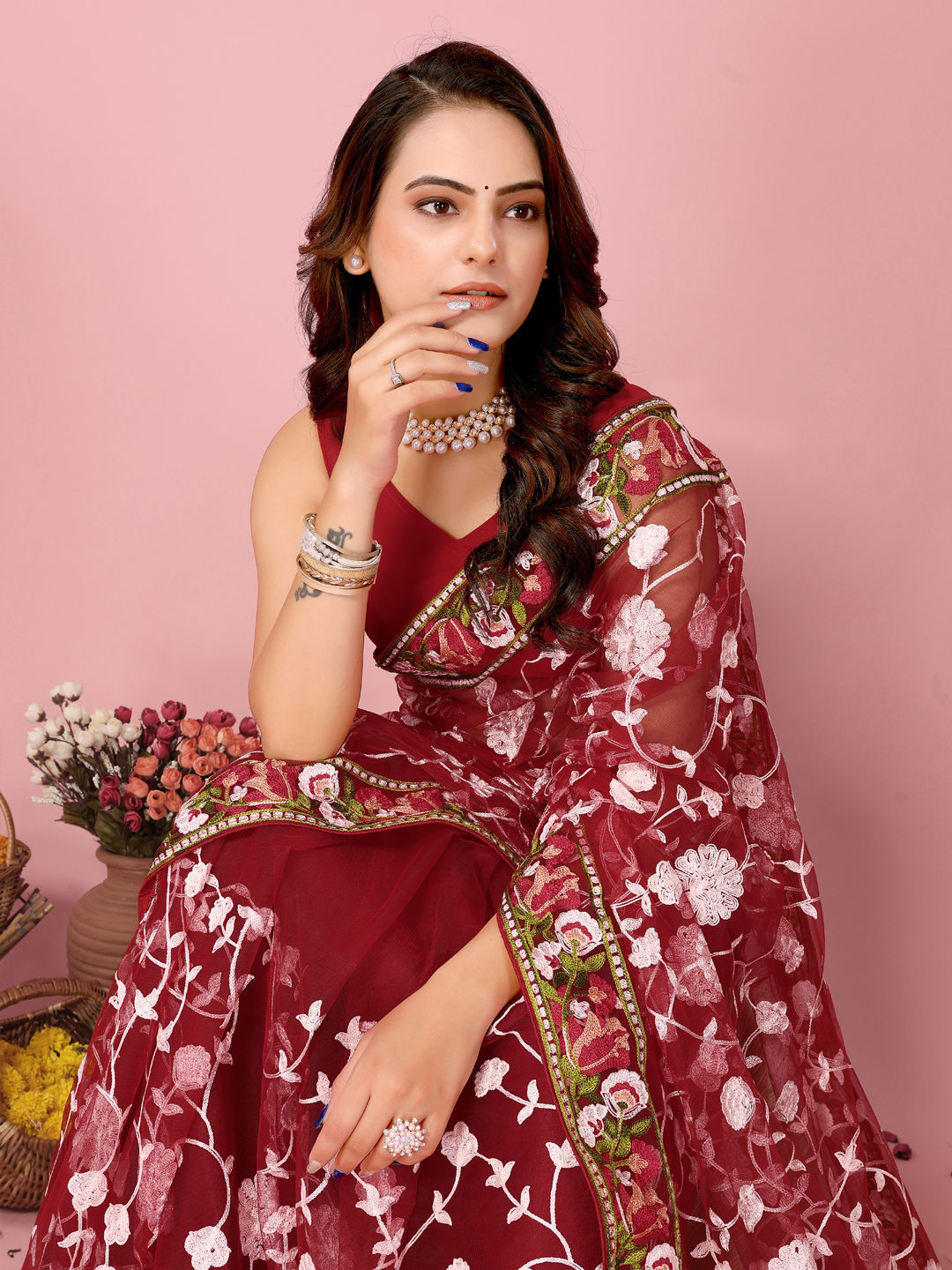 in Red and Maroon with Thread work