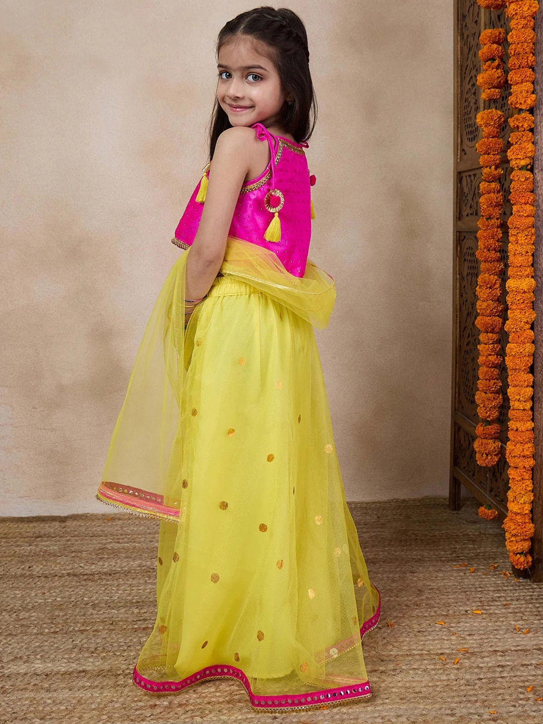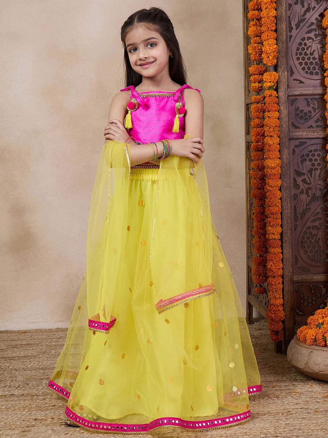 Blended Festive Kids Lehenga in Yellow with Floral work