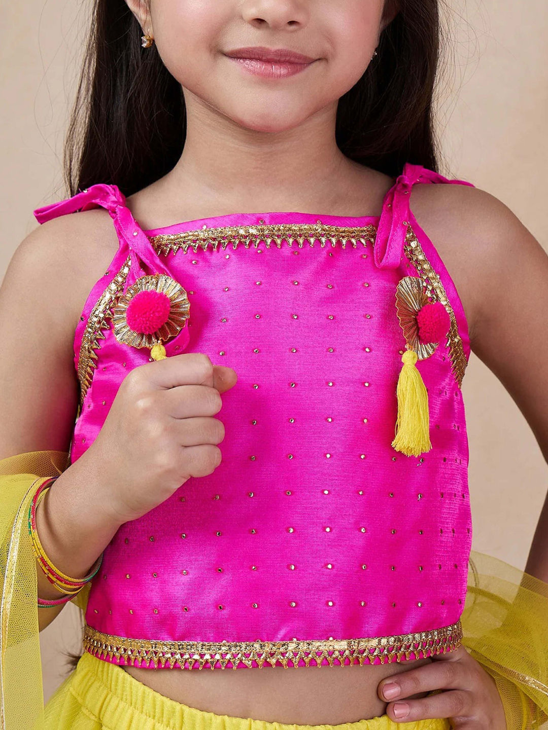 Organza Silk Festive Kids Lehenga in Pink and Majenta with Embroidered work