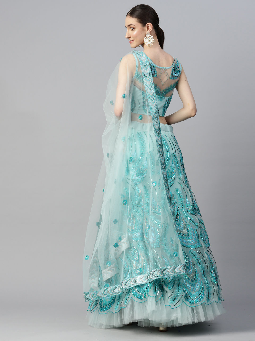 Blue color Lehenga in Net fabric with Embroidered, Thread work