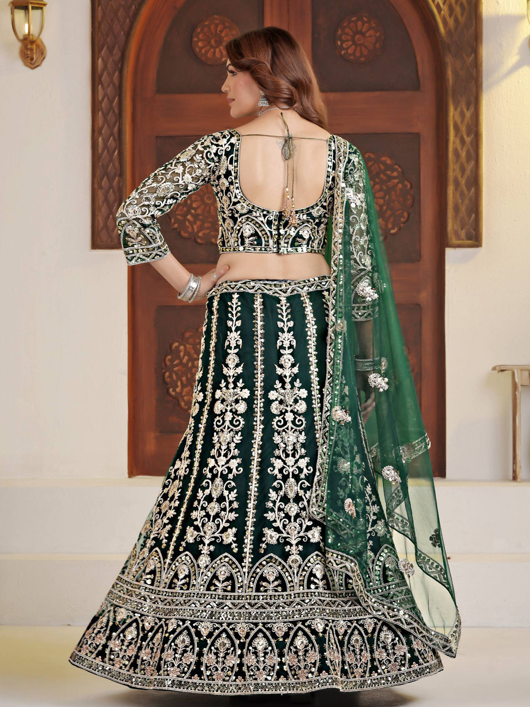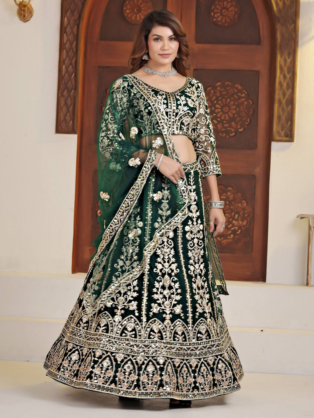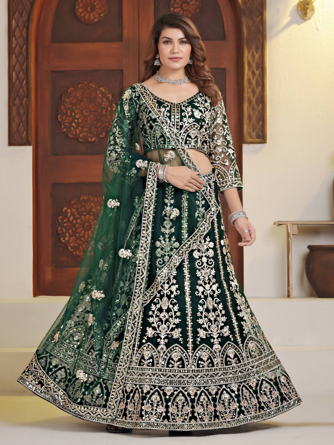 Green color Lehenga in Net fabric with Embroidered, Sequence, Zari work