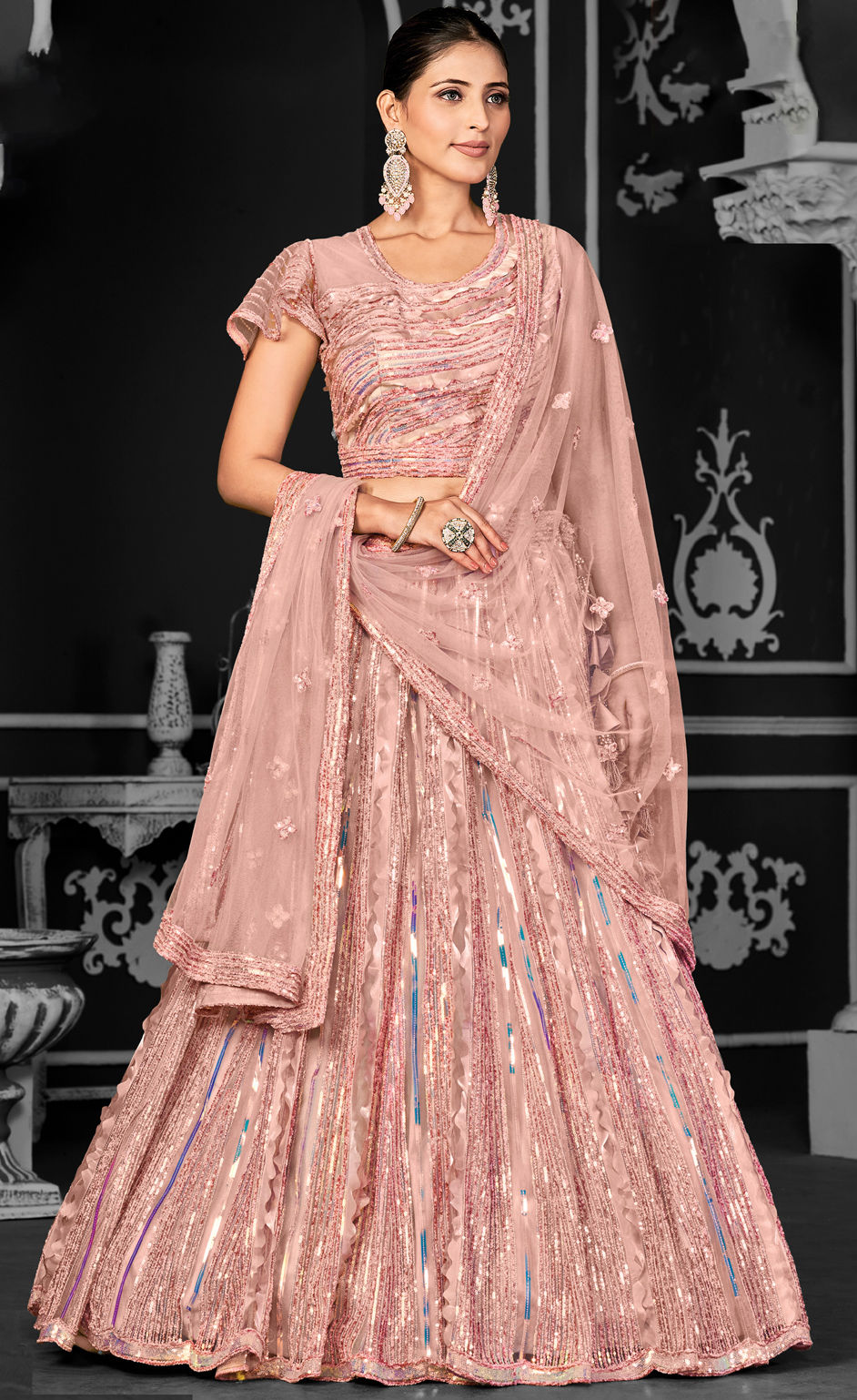 Pink and Majenta color Lehenga in Net fabric with Embroidered, Sequence, Thread work