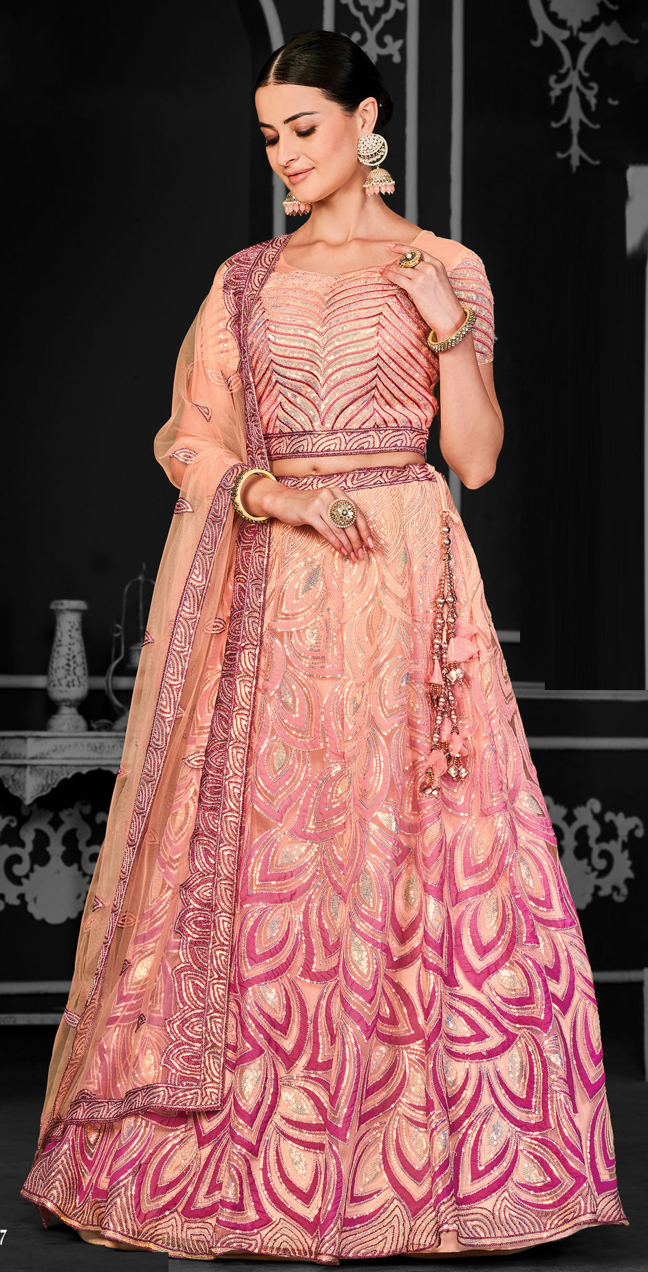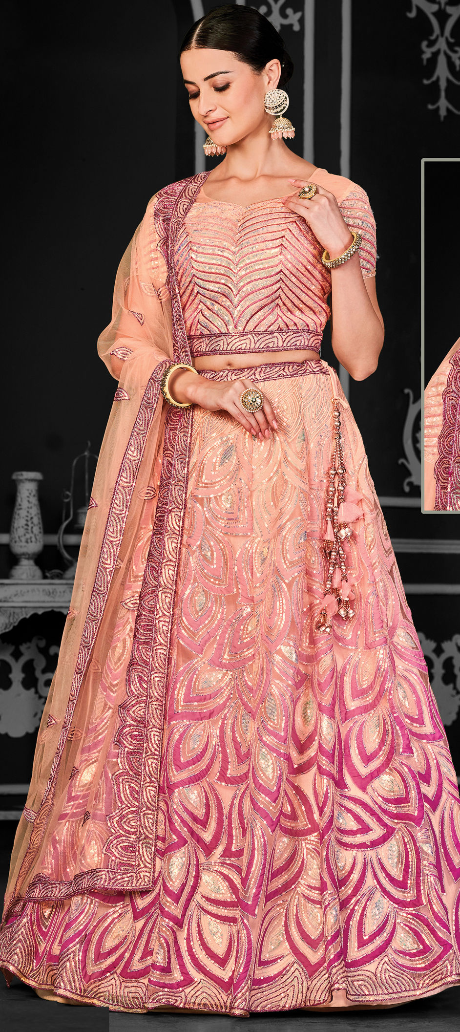 Pink and Majenta color Lehenga in Net fabric with Embroidered, Sequence, Thread work