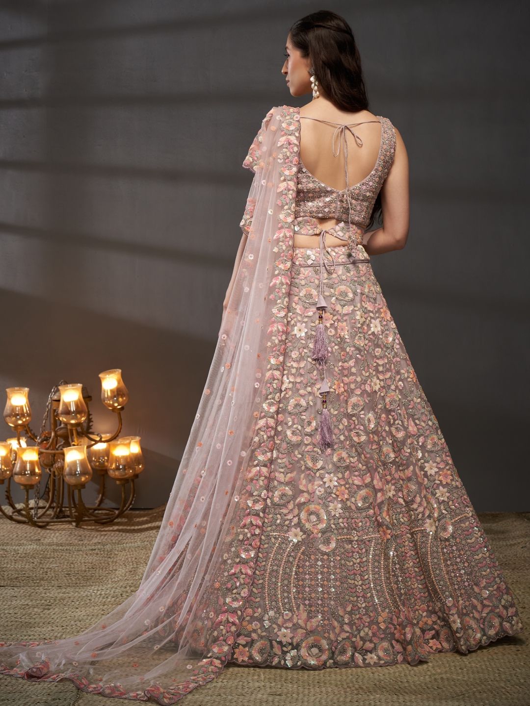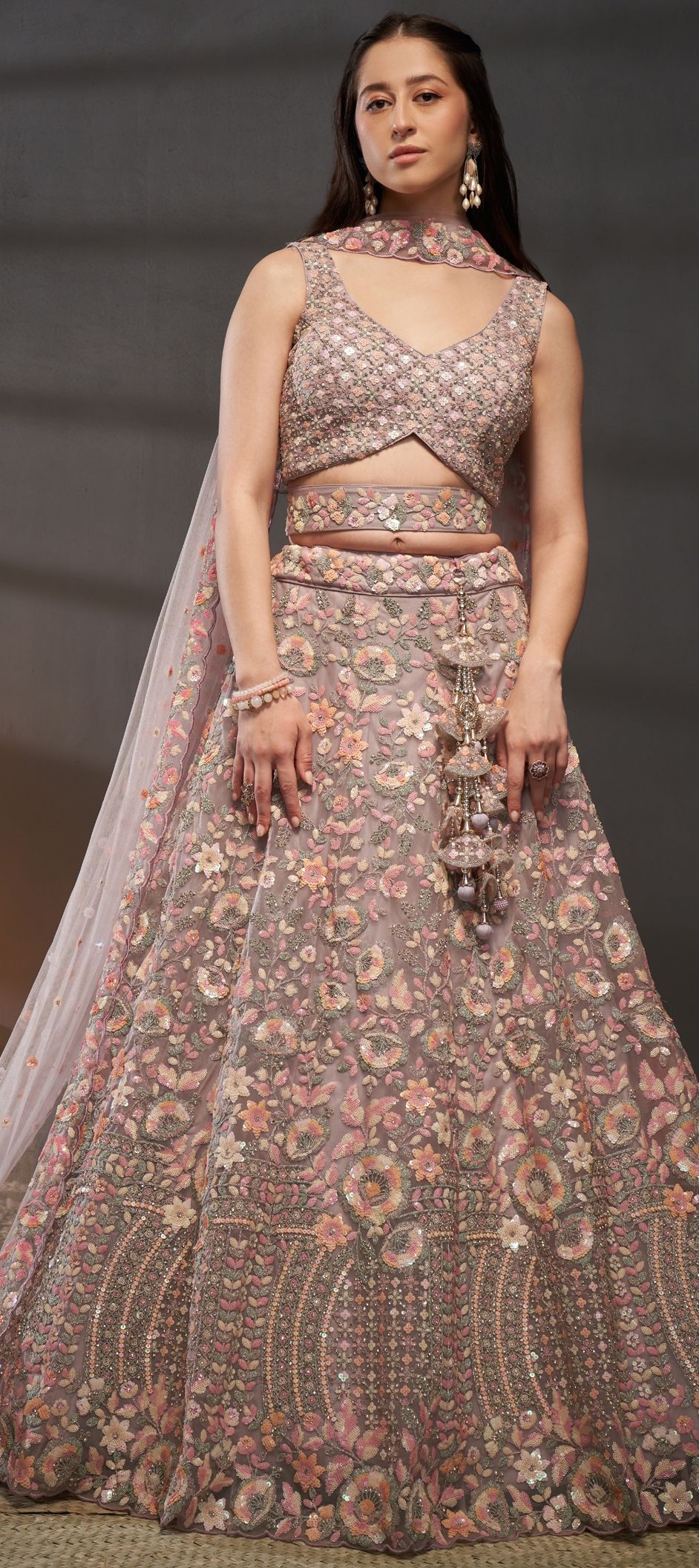 Purple and Violet color Lehenga in Net fabric with Embroidered, Sequence, Zircon work