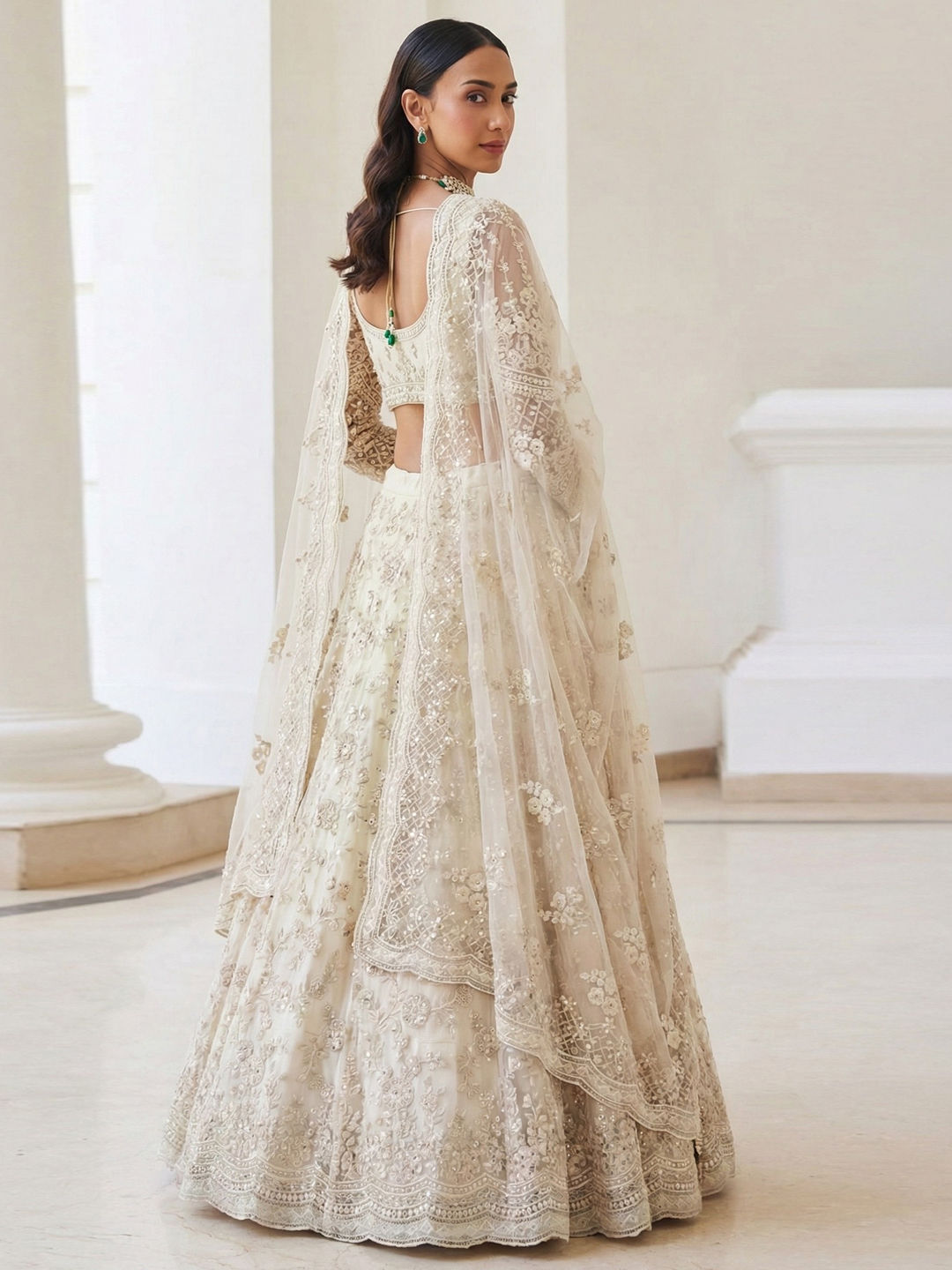 White and Off White color Lehenga in Net fabric with Embroidered, Resham, Sequence, Thread work