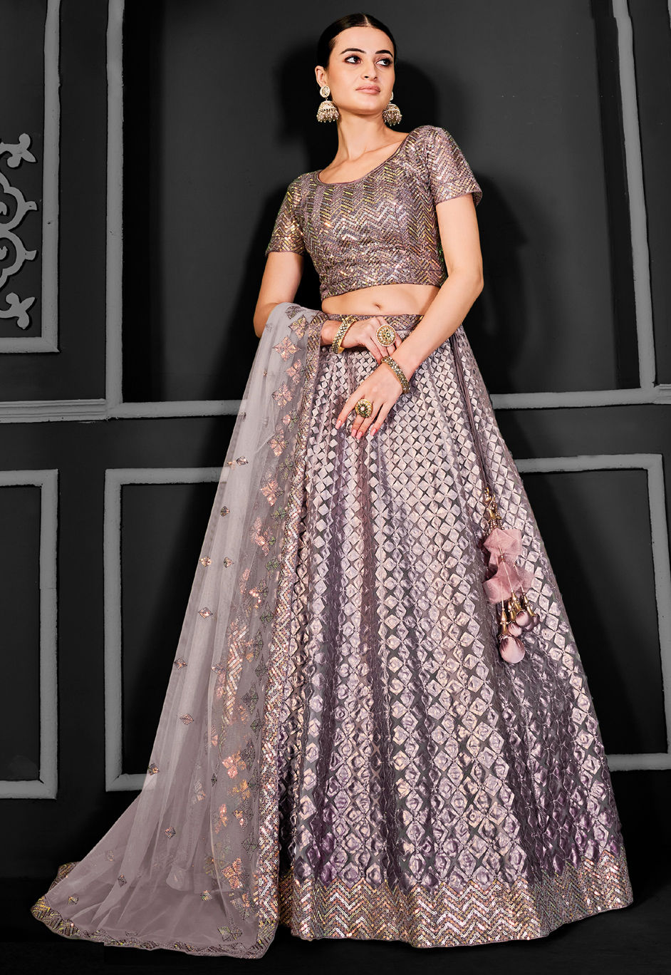 White and Off White color Lehenga in Net fabric with Embroidered, Sequence, Thread work