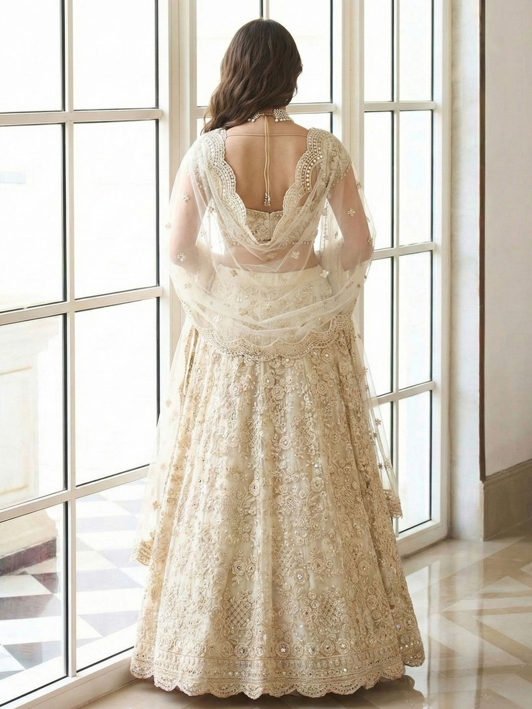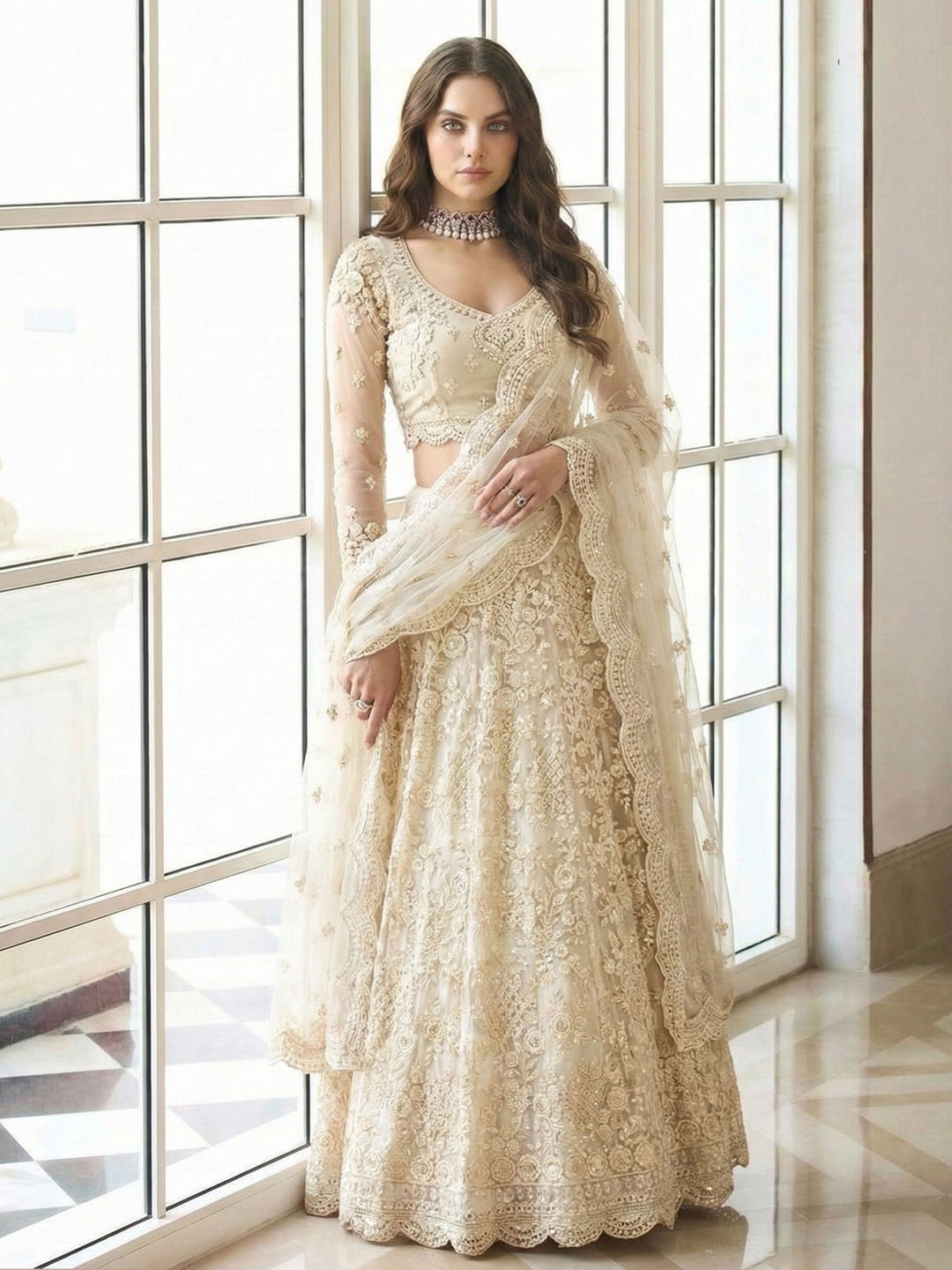 White and Off White color Lehenga in Net fabric with Embroidered, Resham, Thread work