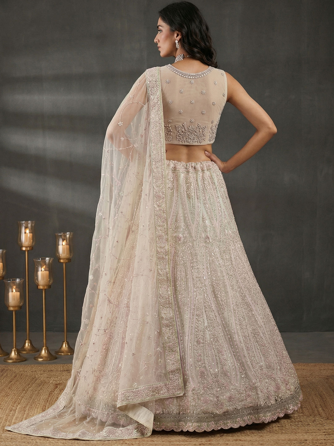 White and Off White color Lehenga in Net fabric with Embroidered, Sequence, Stone, Thread, Zircon work