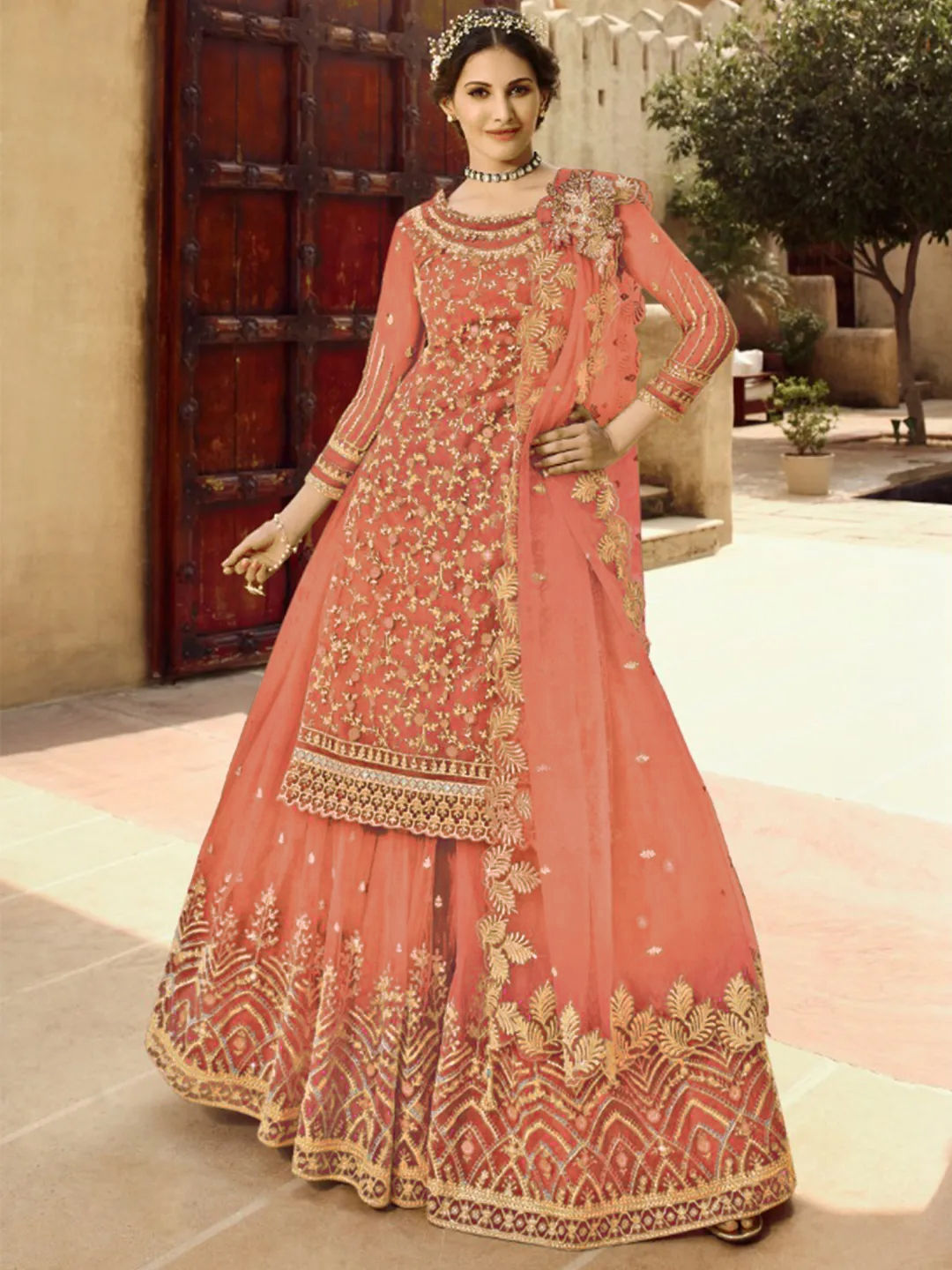 Pink and Majenta color Salwar Kameez in Net fabric with Embroidered, Sequence, Thread, Zari work