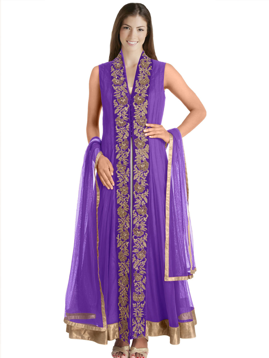 in Purple and Violet with Thread work