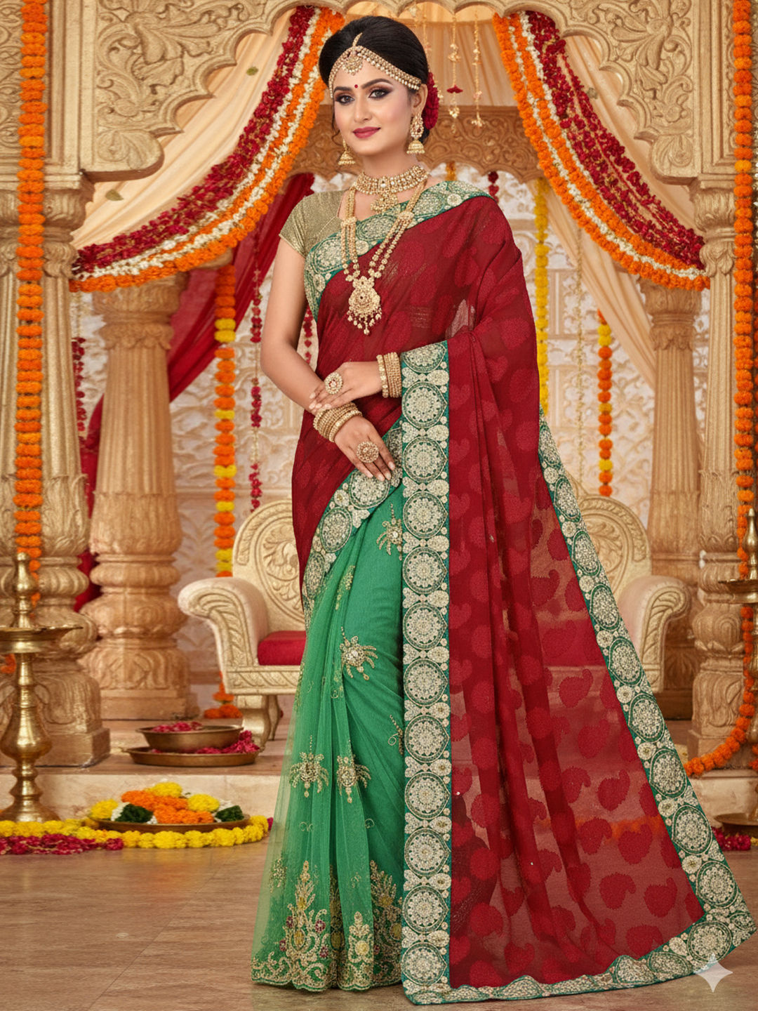 Georgette Bridal Saree in Red and Maroon with Embroidered work