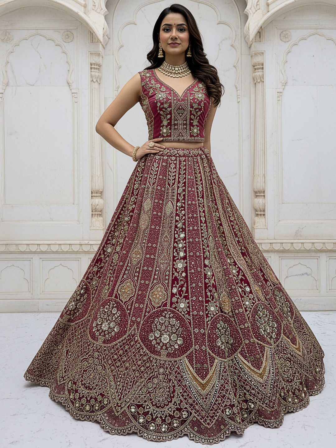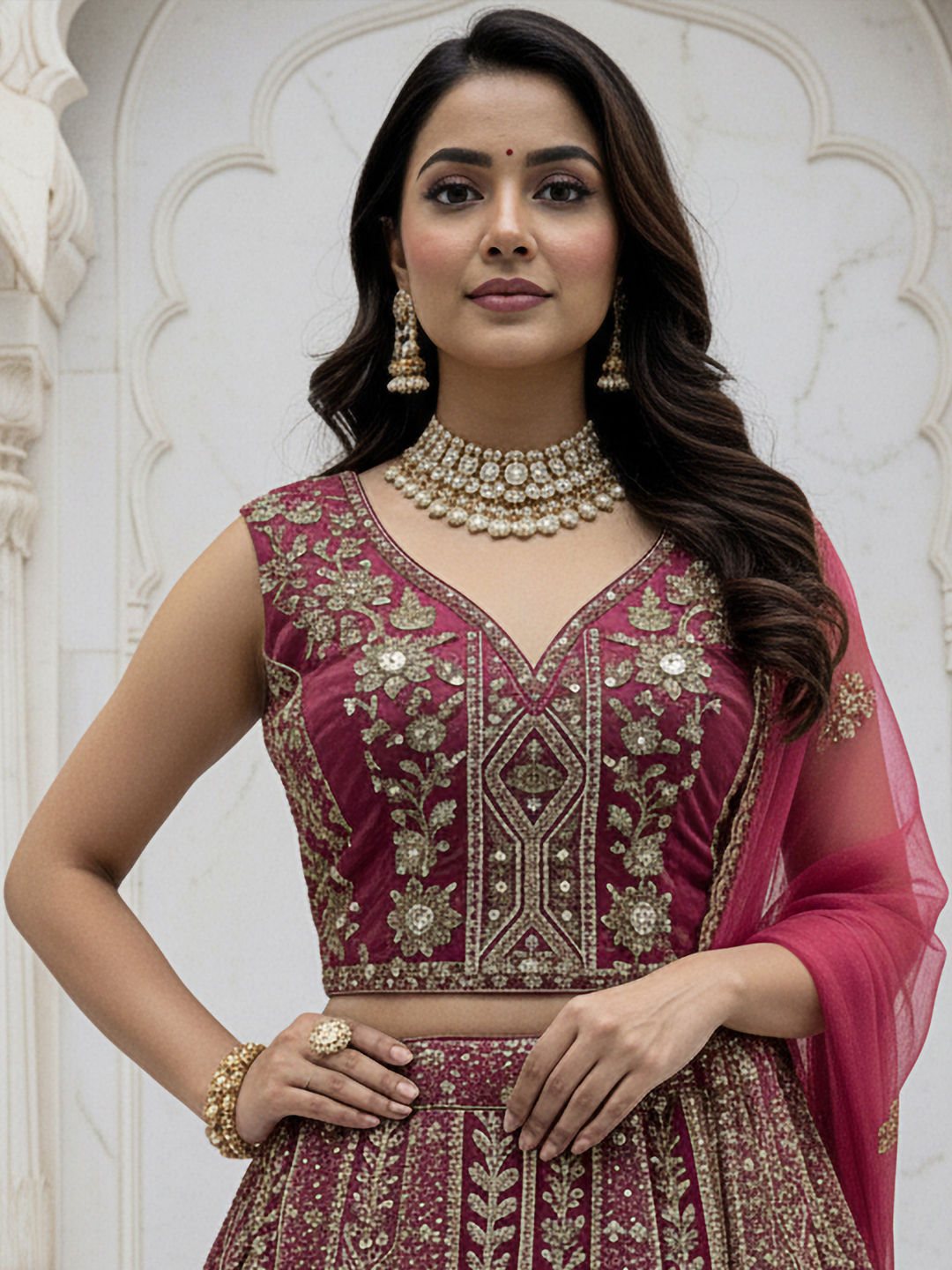 Organza Silk Bridal Lehenga in Pink and Majenta with Embroidered work